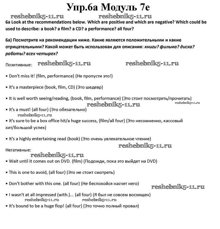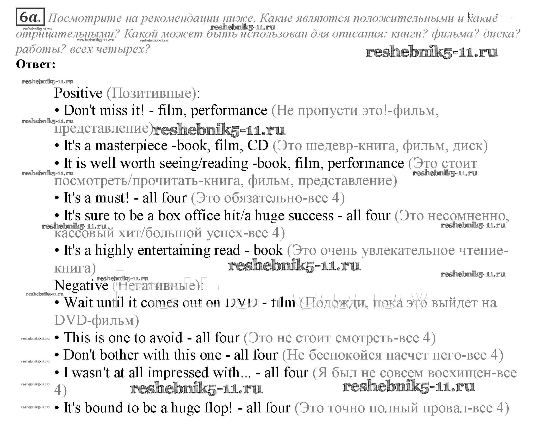 Готовая домашняя работа с ответами по Английскому языку за 10 класс Афанасьева, Дули, Михеева, Оби, Эванс Учебник Spotlight Просвещение 2015 ФГОС - Часть 7e 6a