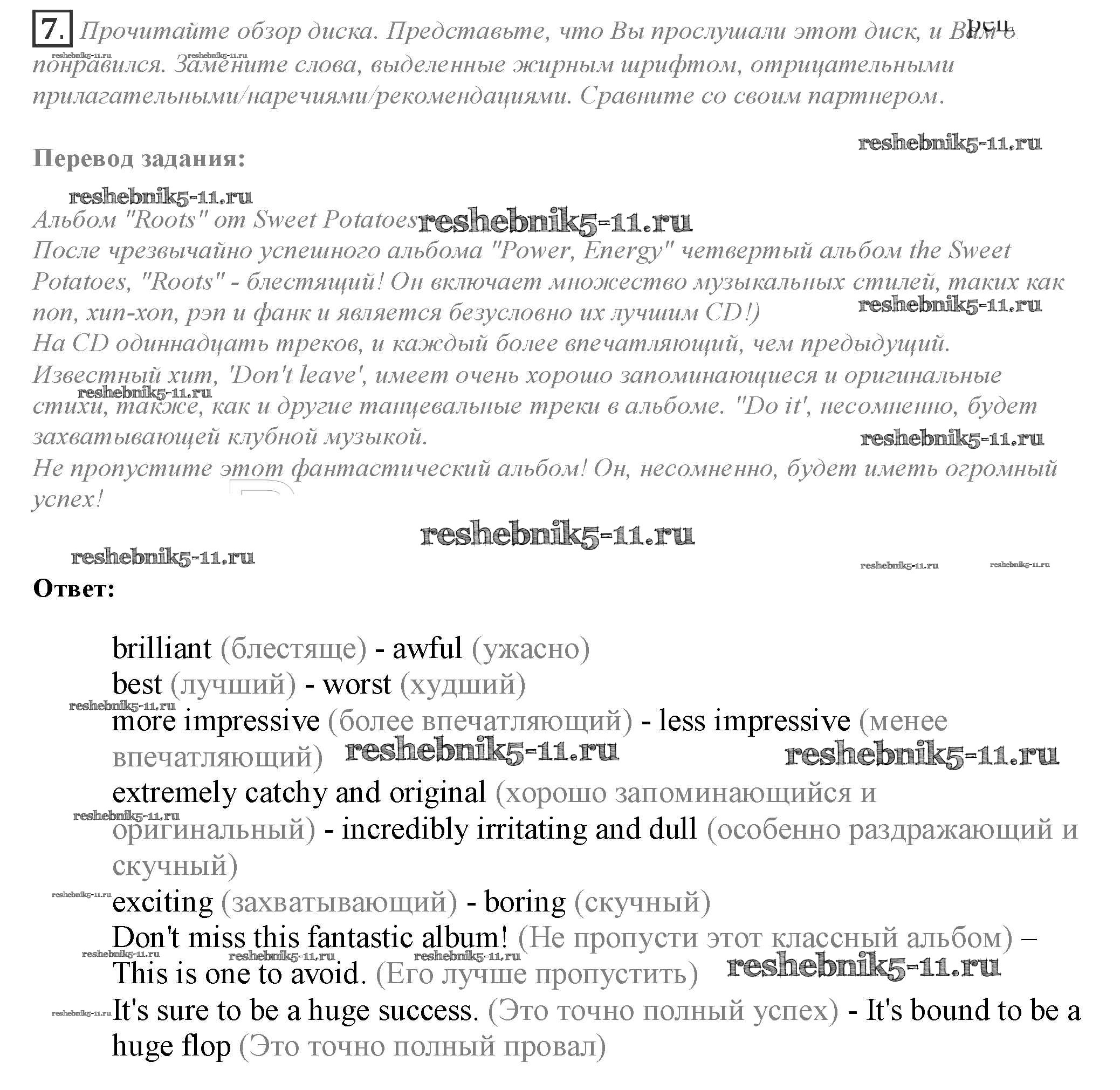 Готовая домашняя работа с ответами по Английскому языку за 10 класс Афанасьева, Дули, Михеева, Оби, Эванс Учебник Spotlight Просвещение 2015 ФГОС - Часть 7e 7