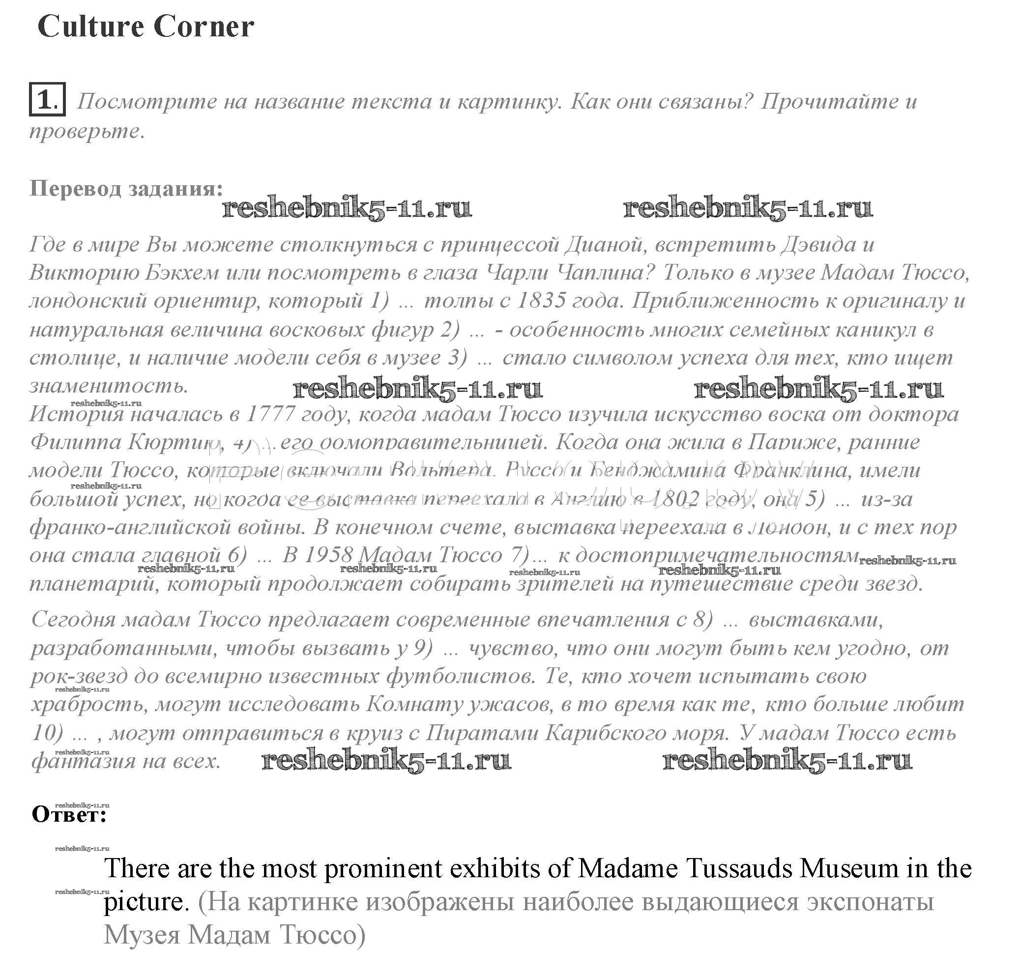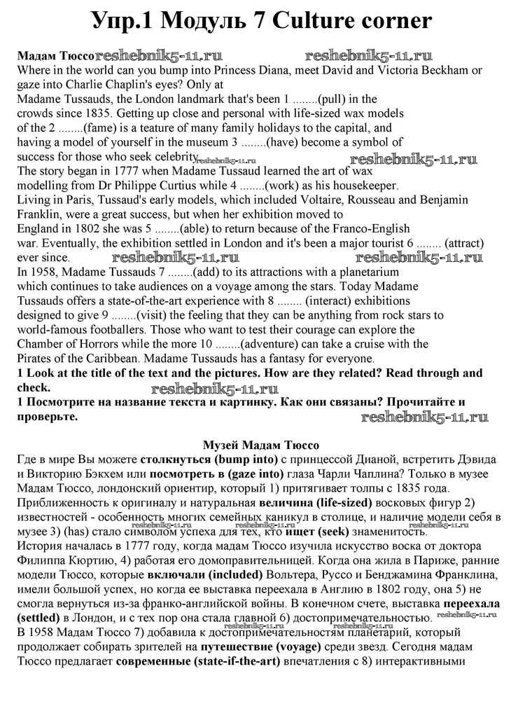 Готовая домашняя работа с ответами по Английскому языку за 10 класс Афанасьева, Дули, Михеева, Оби, Эванс Учебник Spotlight Просвещение 2015 ФГОС - Culture corner 1