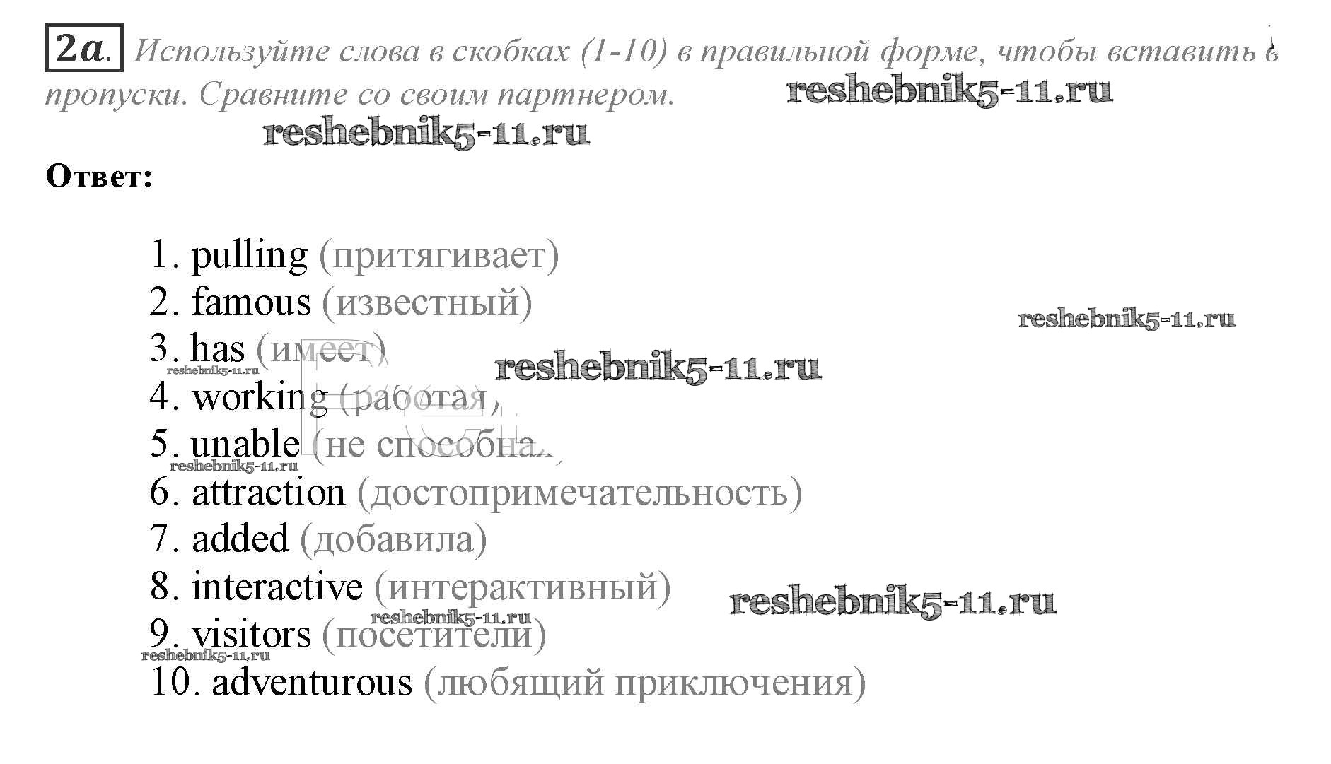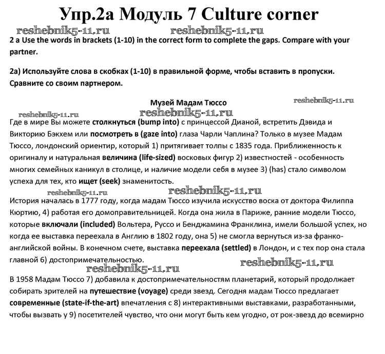 Готовая домашняя работа с ответами по Английскому языку за 10 класс Афанасьева, Дули, Михеева, Оби, Эванс Учебник Spotlight Просвещение 2015 ФГОС - Culture corner 2a