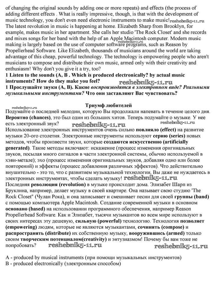 Готовая домашняя работа с ответами по Английскому языку за 10 класс Афанасьева, Дули, Михеева, Оби, Эванс Учебник Spotlight Просвещение 2015 ФГОС - Accross the curriculum Music 1
