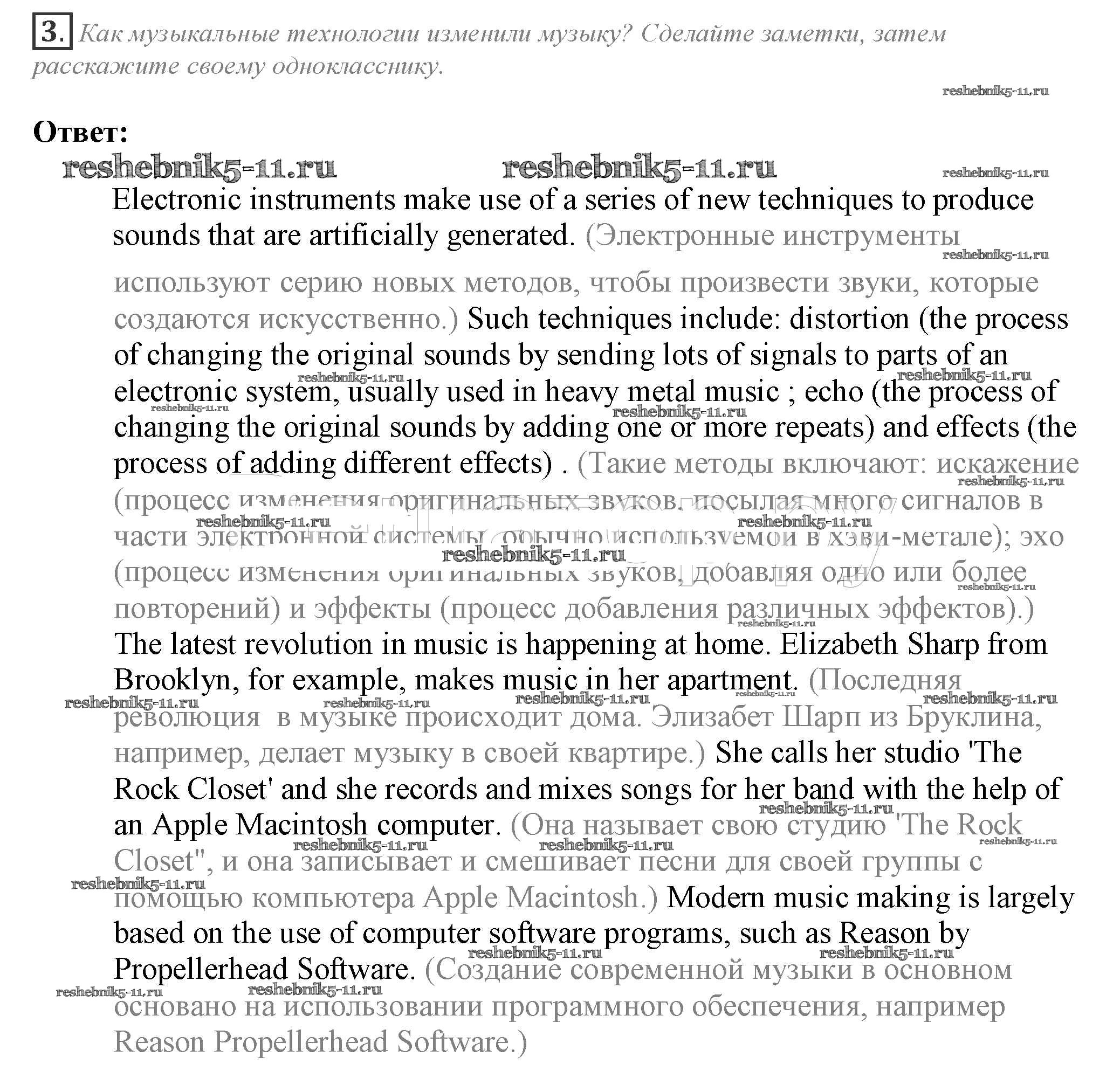 Готовая домашняя работа с ответами по Английскому языку за 10 класс Афанасьева, Дули, Михеева, Оби, Эванс Учебник Spotlight Просвещение 2015 ФГОС - Accross the curriculum Music 3