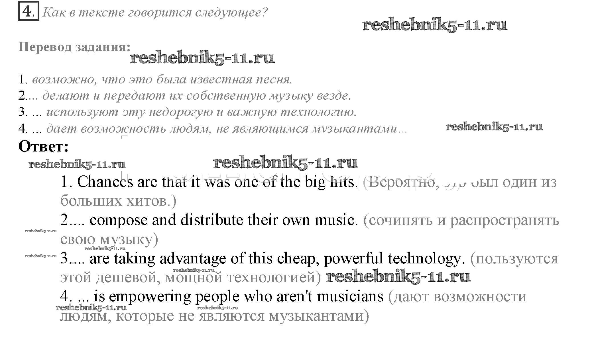 Готовая домашняя работа с ответами по Английскому языку за 10 класс Афанасьева, Дули, Михеева, Оби, Эванс Учебник Spotlight Просвещение 2015 ФГОС - Accross the curriculum Music 4