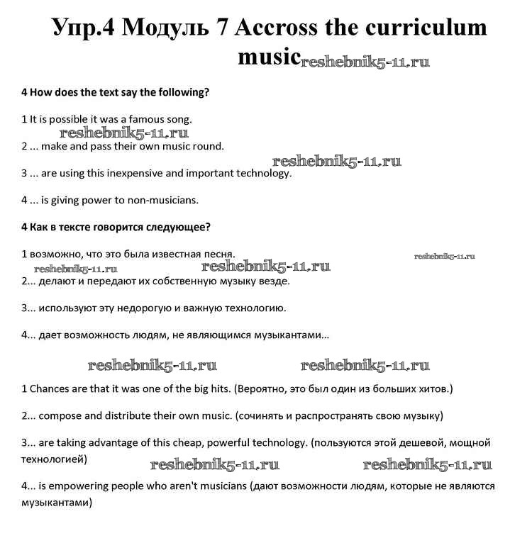 Решебник 1 / module 7 / Accross the curriculum Music / 4