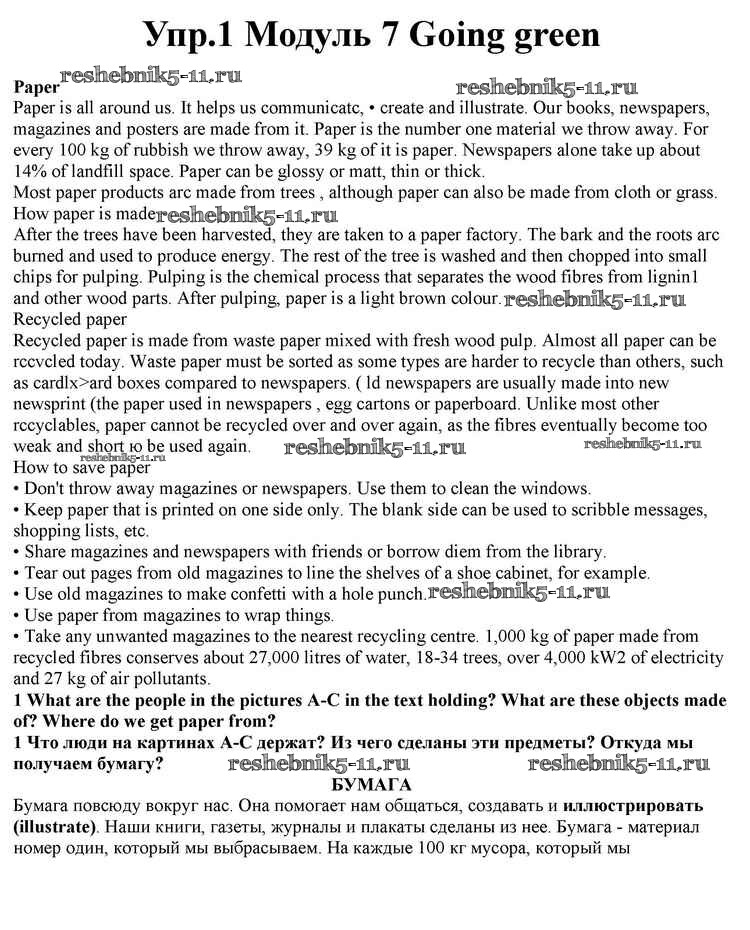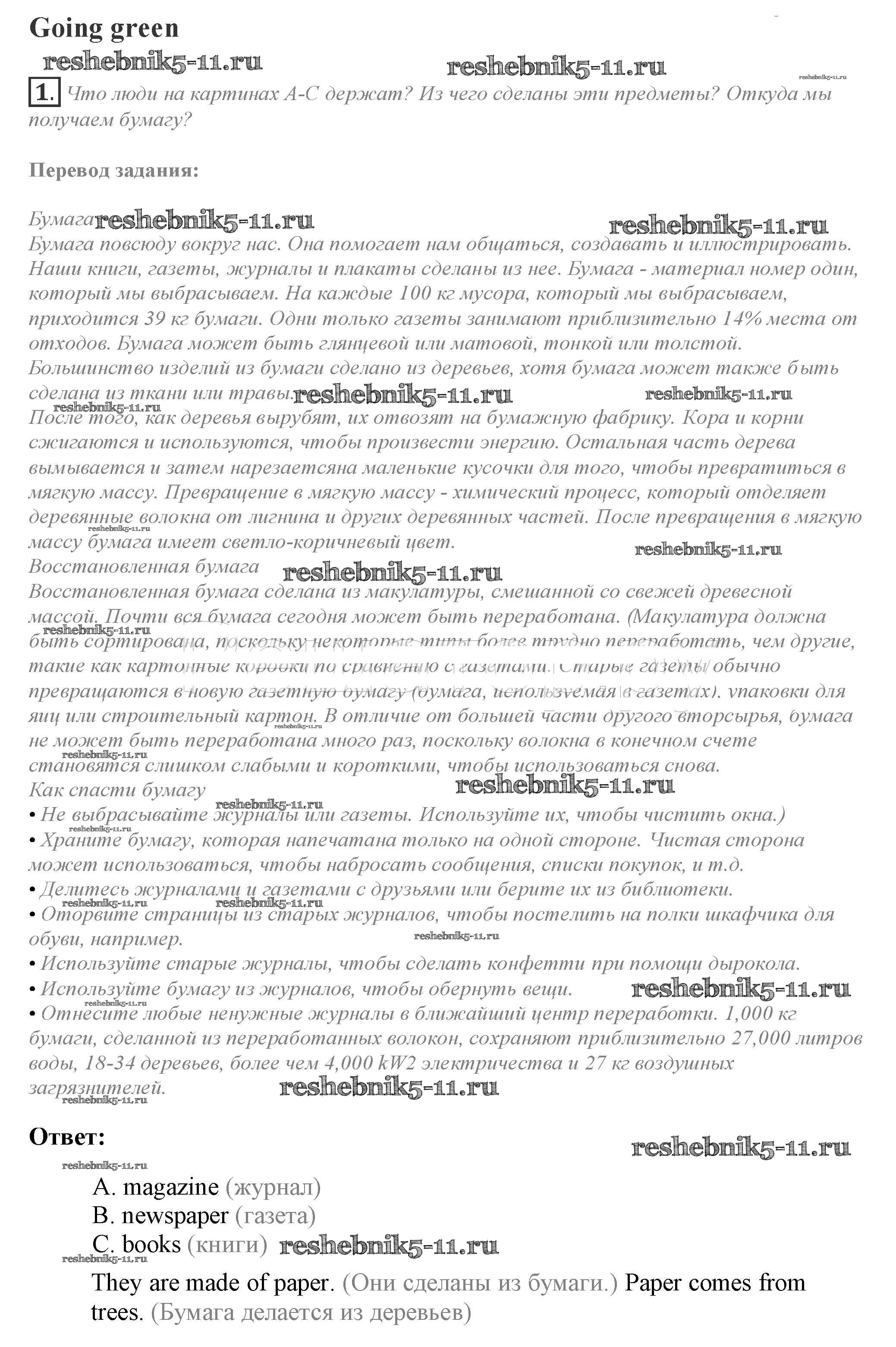 Готовая домашняя работа с ответами по Английскому языку за 10 класс Афанасьева, Дули, Михеева, Оби, Эванс Учебник Spotlight Просвещение 2015 ФГОС - Going green 1