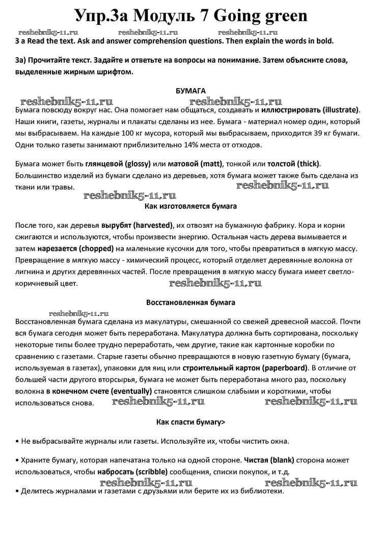 Готовая домашняя работа с ответами по Английскому языку за 10 класс Афанасьева, Дули, Михеева, Оби, Эванс Учебник Spotlight Просвещение 2015 ФГОС - Going green 3a