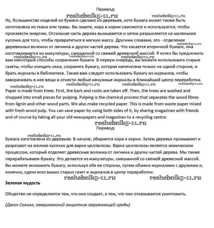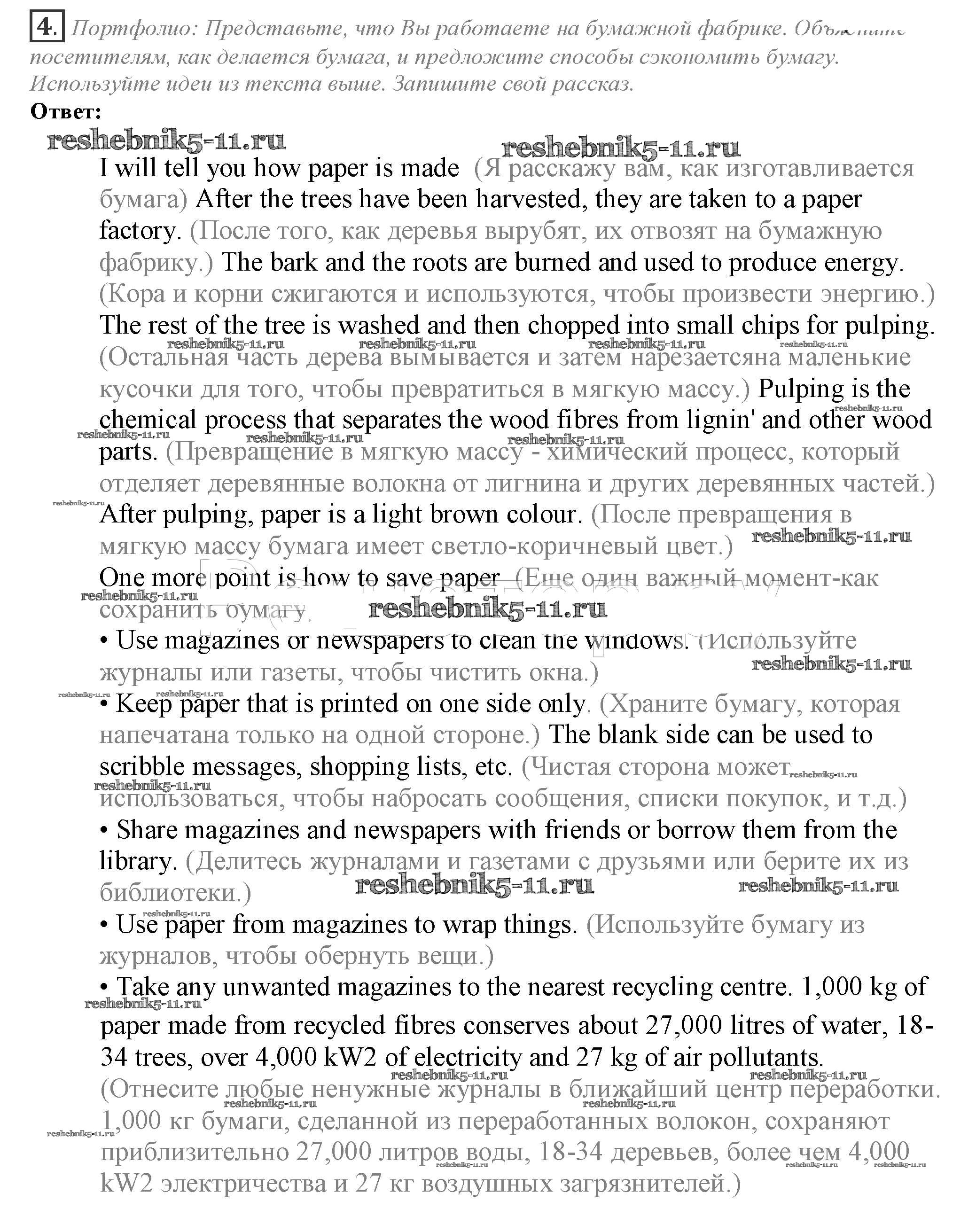 Готовая домашняя работа с ответами по Английскому языку за 10 класс Афанасьева, Дули, Михеева, Оби, Эванс Учебник Spotlight Просвещение 2015 ФГОС - Going green 4