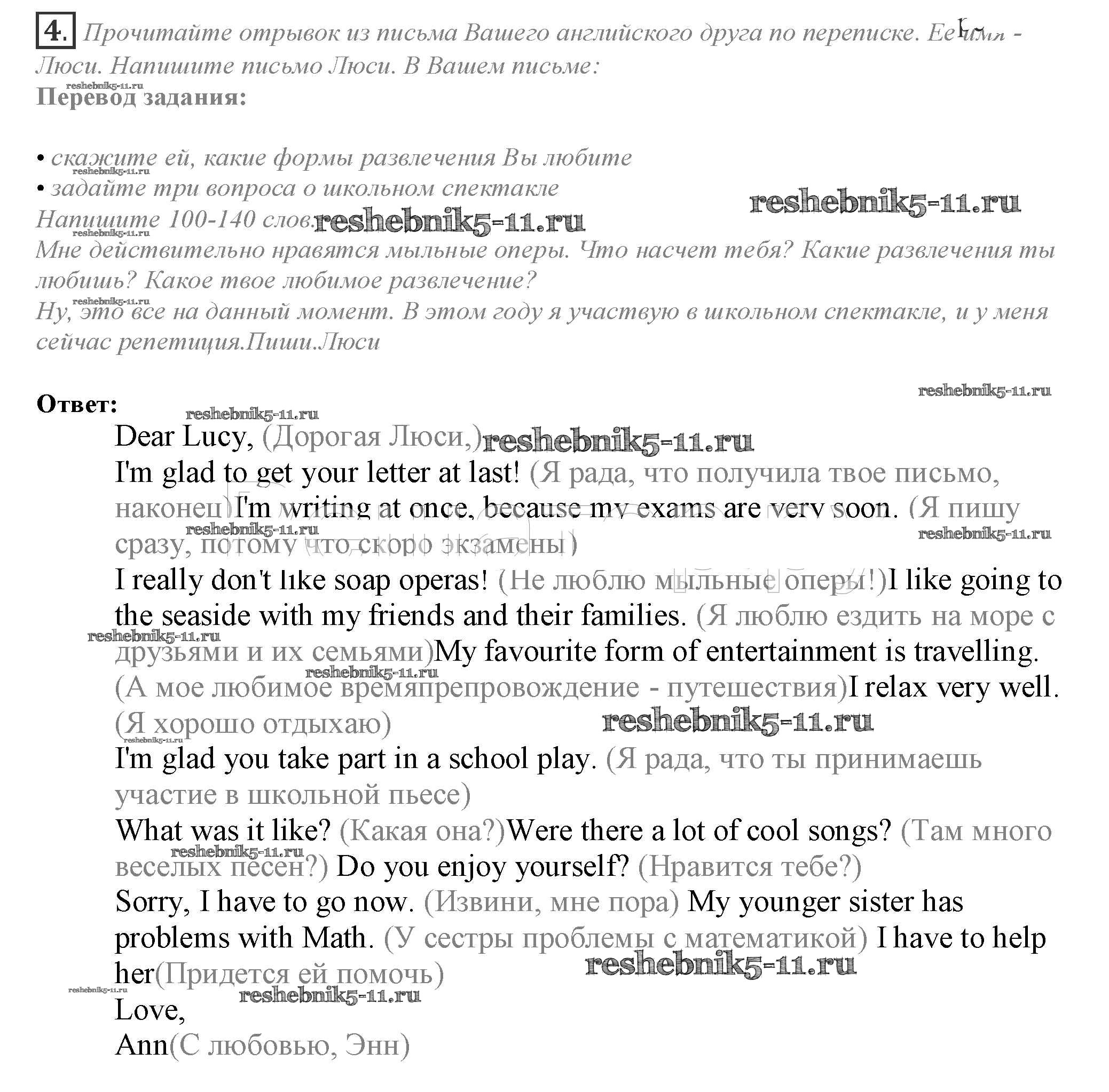 Готовая домашняя работа с ответами по Английскому языку за 10 класс Афанасьева, Дули, Михеева, Оби, Эванс Учебник Spotlight Просвещение 2015 ФГОС - Spotlight on Exams 4
