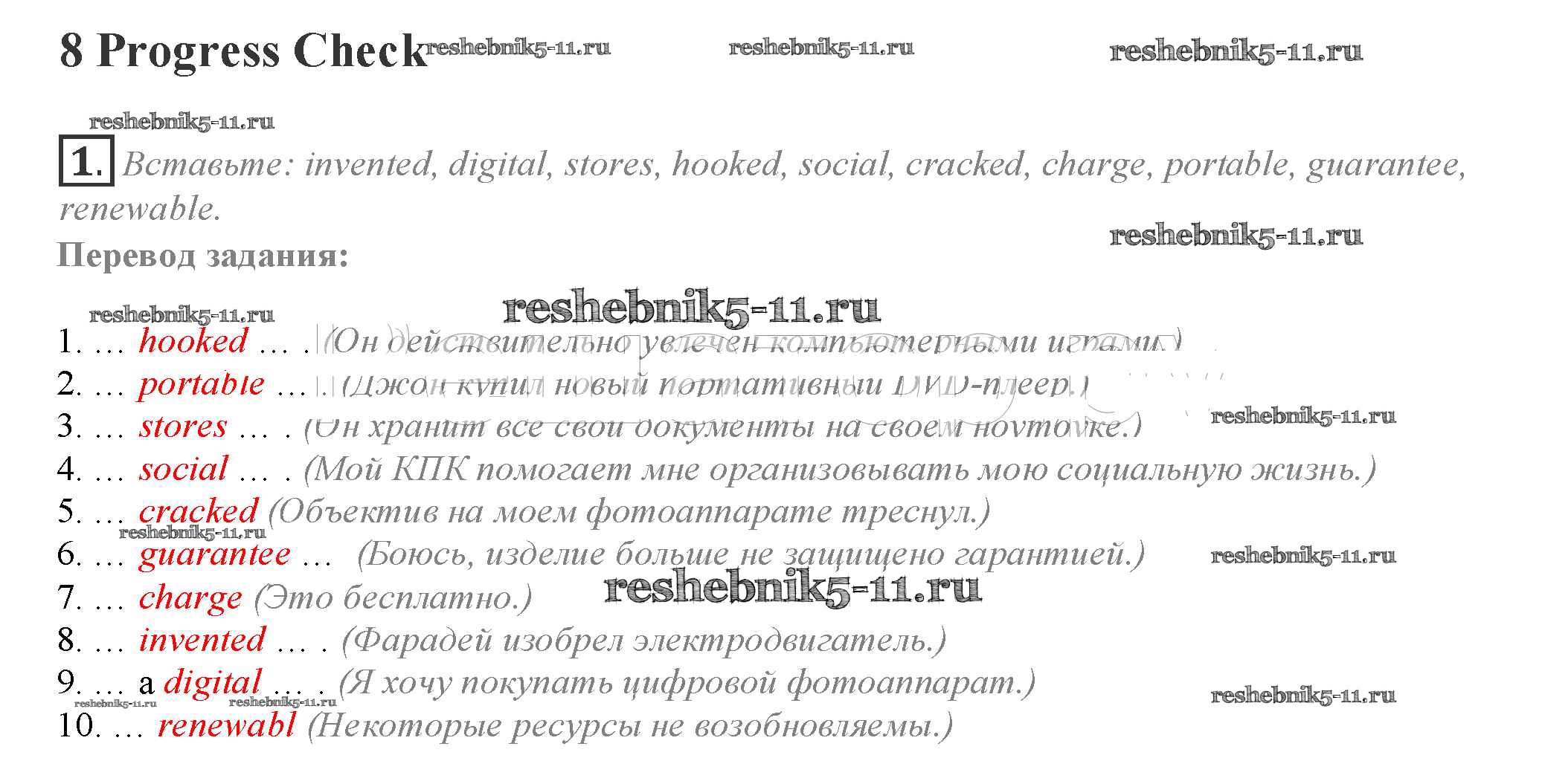 Готовая домашняя работа с ответами по Английскому языку за 10 класс Афанасьева, Дули, Михеева, Оби, Эванс Учебник Spotlight Просвещение 2015 ФГОС - Progress Check 1