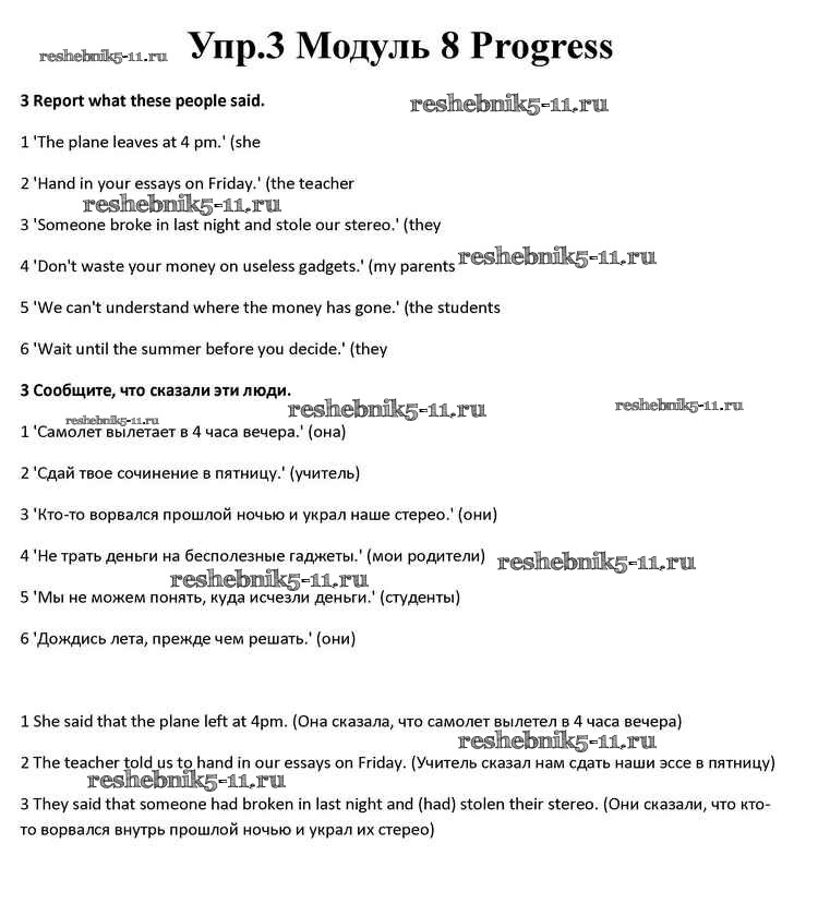 Готовая домашняя работа с ответами по Английскому языку за 10 класс Афанасьева, Дули, Михеева, Оби, Эванс Учебник Spotlight Просвещение 2015 ФГОС - Progress Check 3
