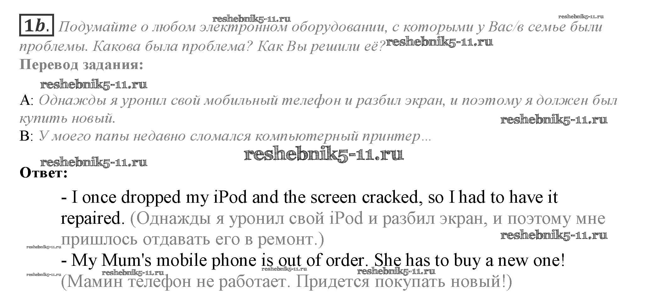 Готовая домашняя работа с ответами по Английскому языку за 10 класс Афанасьева, Дули, Михеева, Оби, Эванс Учебник Spotlight Просвещение 2015 ФГОС - Часть 8b 1b