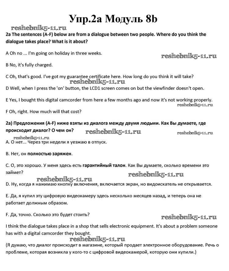 Готовая домашняя работа с ответами по Английскому языку за 10 класс Афанасьева, Дули, Михеева, Оби, Эванс Учебник Spotlight Просвещение 2015 ФГОС - Часть 8b 2a