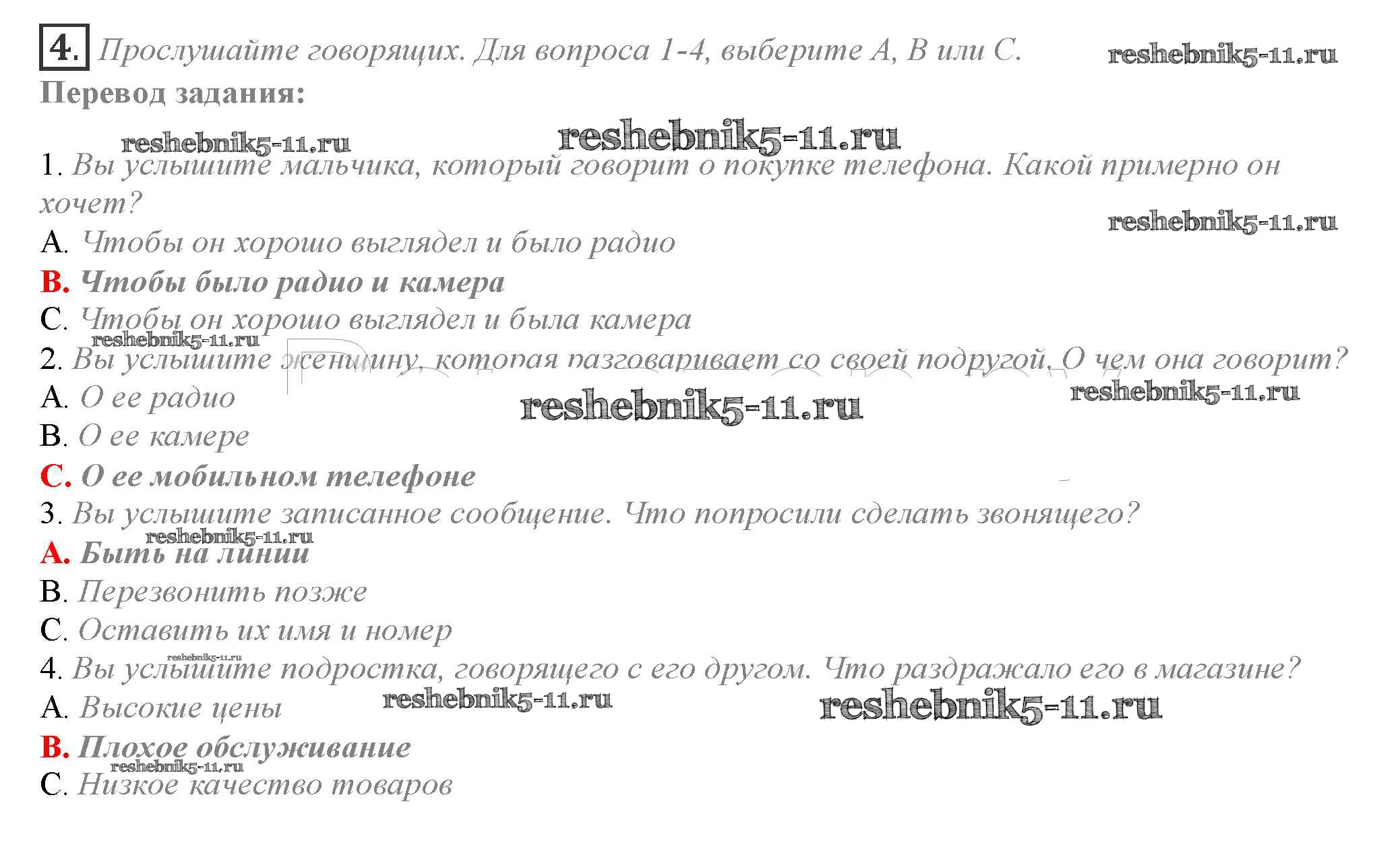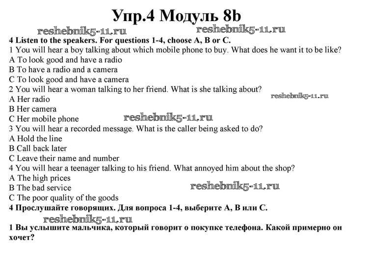 Готовая домашняя работа с ответами по Английскому языку за 10 класс Афанасьева, Дули, Михеева, Оби, Эванс Учебник Spotlight Просвещение 2015 ФГОС - Часть 8b 4