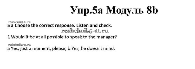 Готовая домашняя работа с ответами по Английскому языку за 10 класс Афанасьева, Дули, Михеева, Оби, Эванс Учебник Spotlight Просвещение 2015 ФГОС - Часть 8b 5a