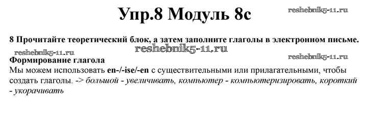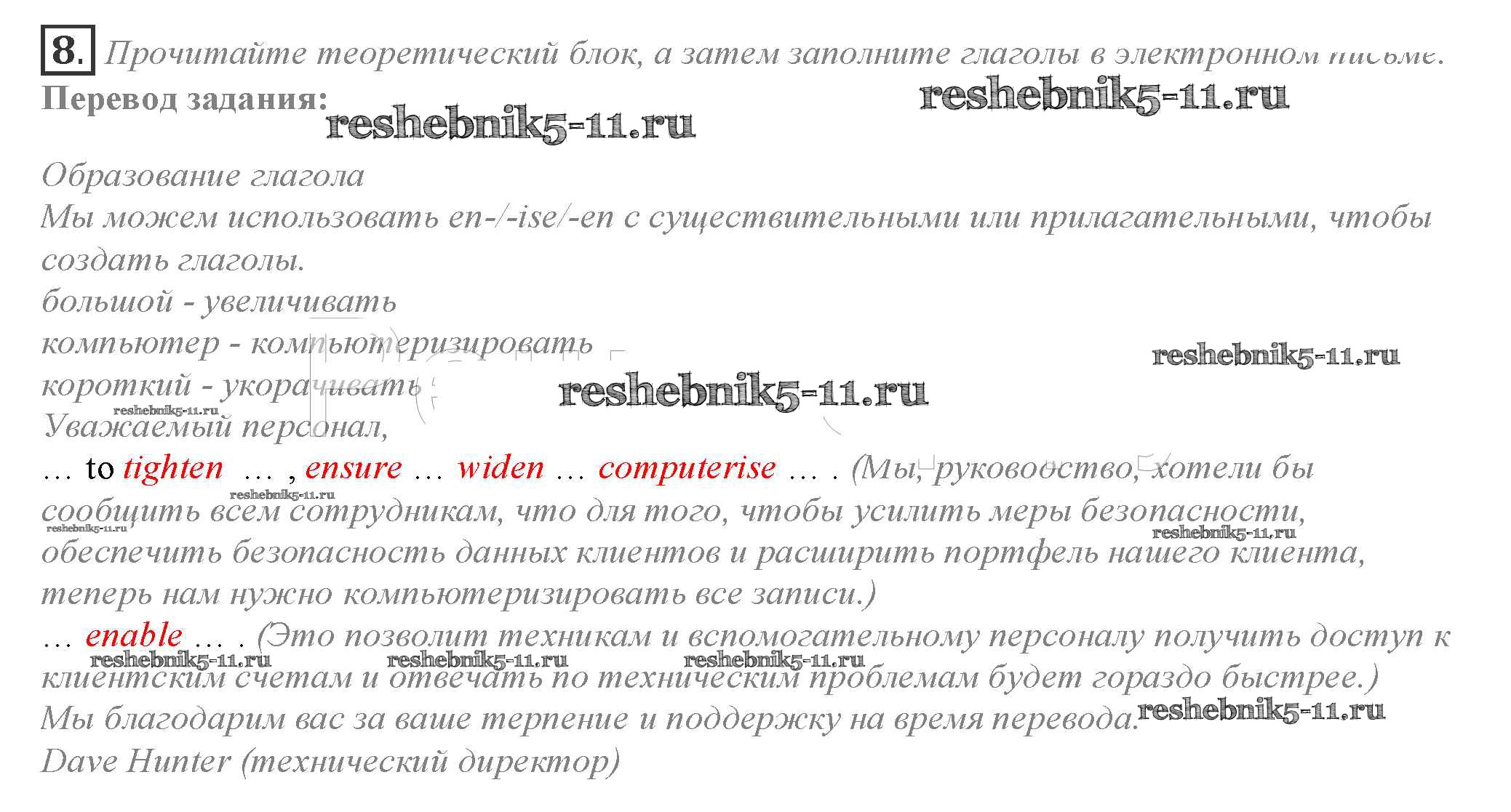 Готовая домашняя работа с ответами по Английскому языку за 10 класс Афанасьева, Дули, Михеева, Оби, Эванс Учебник Spotlight Просвещение 2015 ФГОС - Часть 8c 8