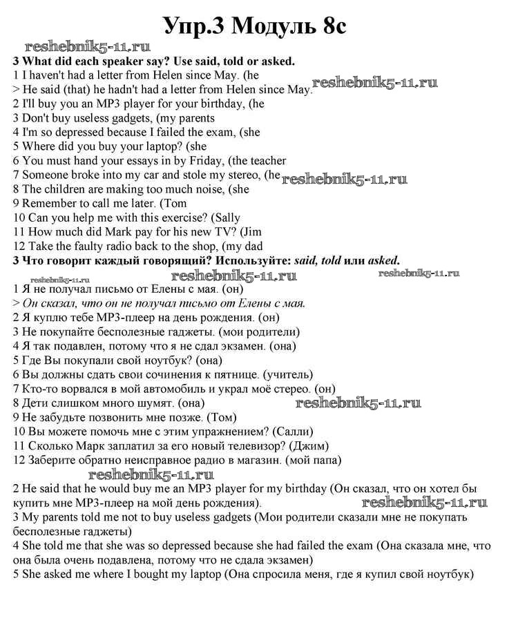 Готовая домашняя работа с ответами по Английскому языку за 10 класс Афанасьева, Дули, Михеева, Оби, Эванс Учебник Spotlight Просвещение 2015 ФГОС - Часть 8c 3