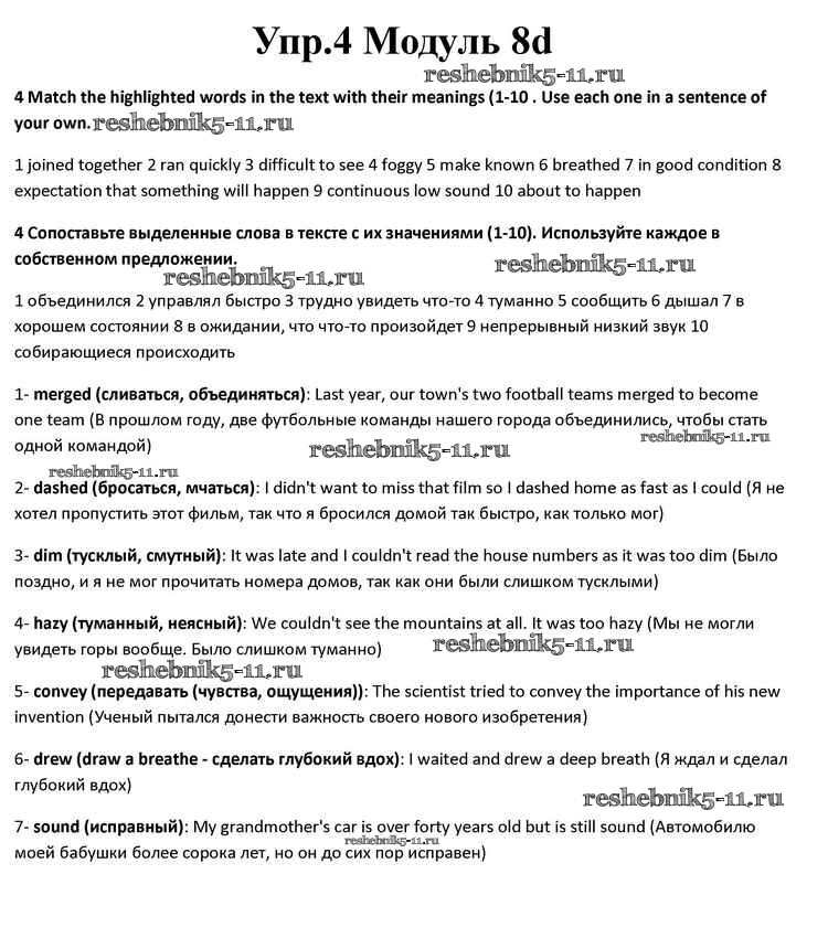 Готовая домашняя работа с ответами по Английскому языку за 10 класс Афанасьева, Дули, Михеева, Оби, Эванс Учебник Spotlight Просвещение 2015 ФГОС - Часть 8d 4