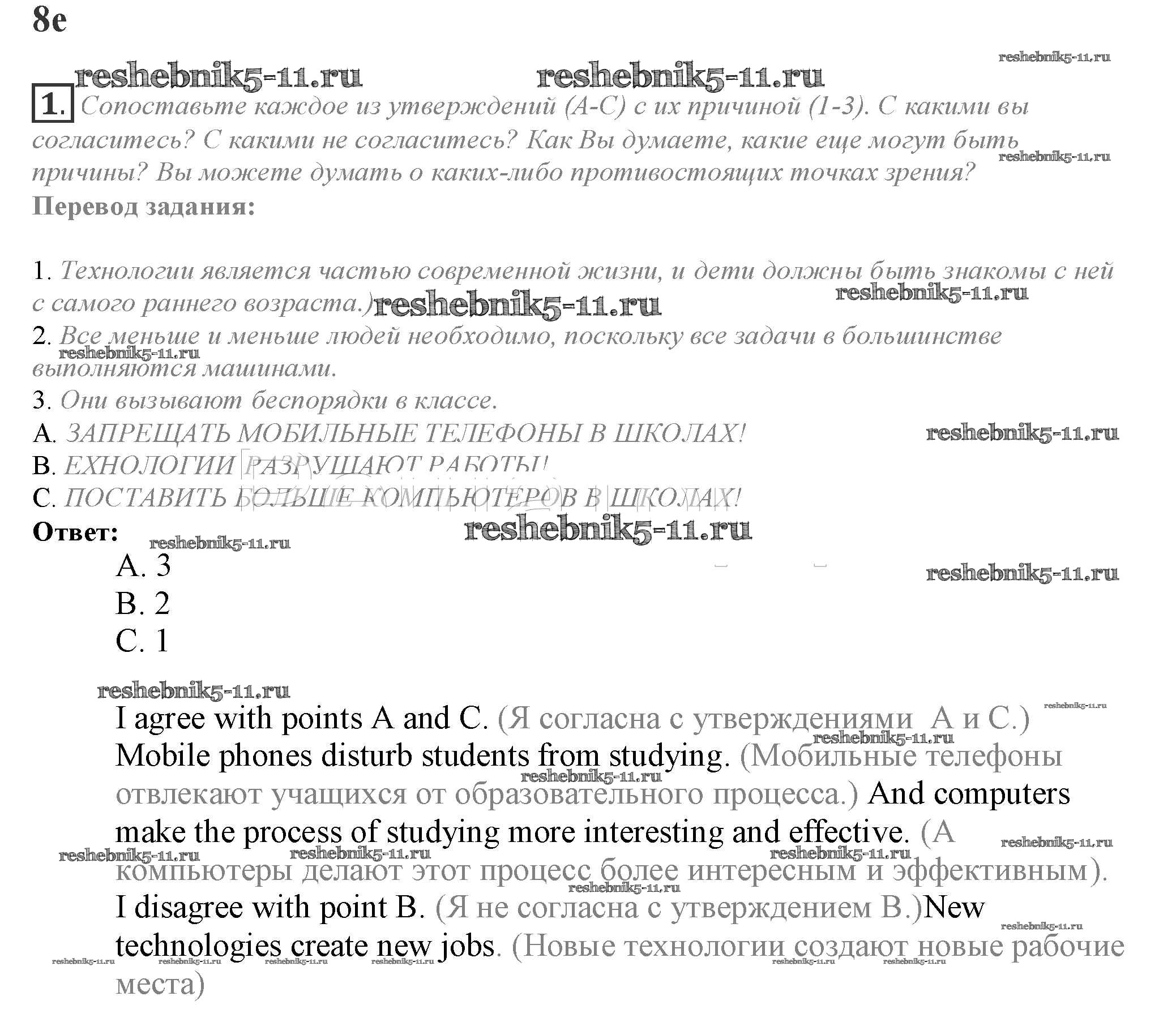 Готовая домашняя работа с ответами по Английскому языку за 10 класс Афанасьева, Дули, Михеева, Оби, Эванс Учебник Spotlight Просвещение 2015 ФГОС - Часть 8e 1
