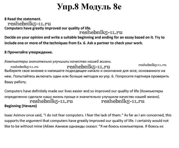 Готовая домашняя работа с ответами по Английскому языку за 10 класс Афанасьева, Дули, Михеева, Оби, Эванс Учебник Spotlight Просвещение 2015 ФГОС - Часть 8e 8