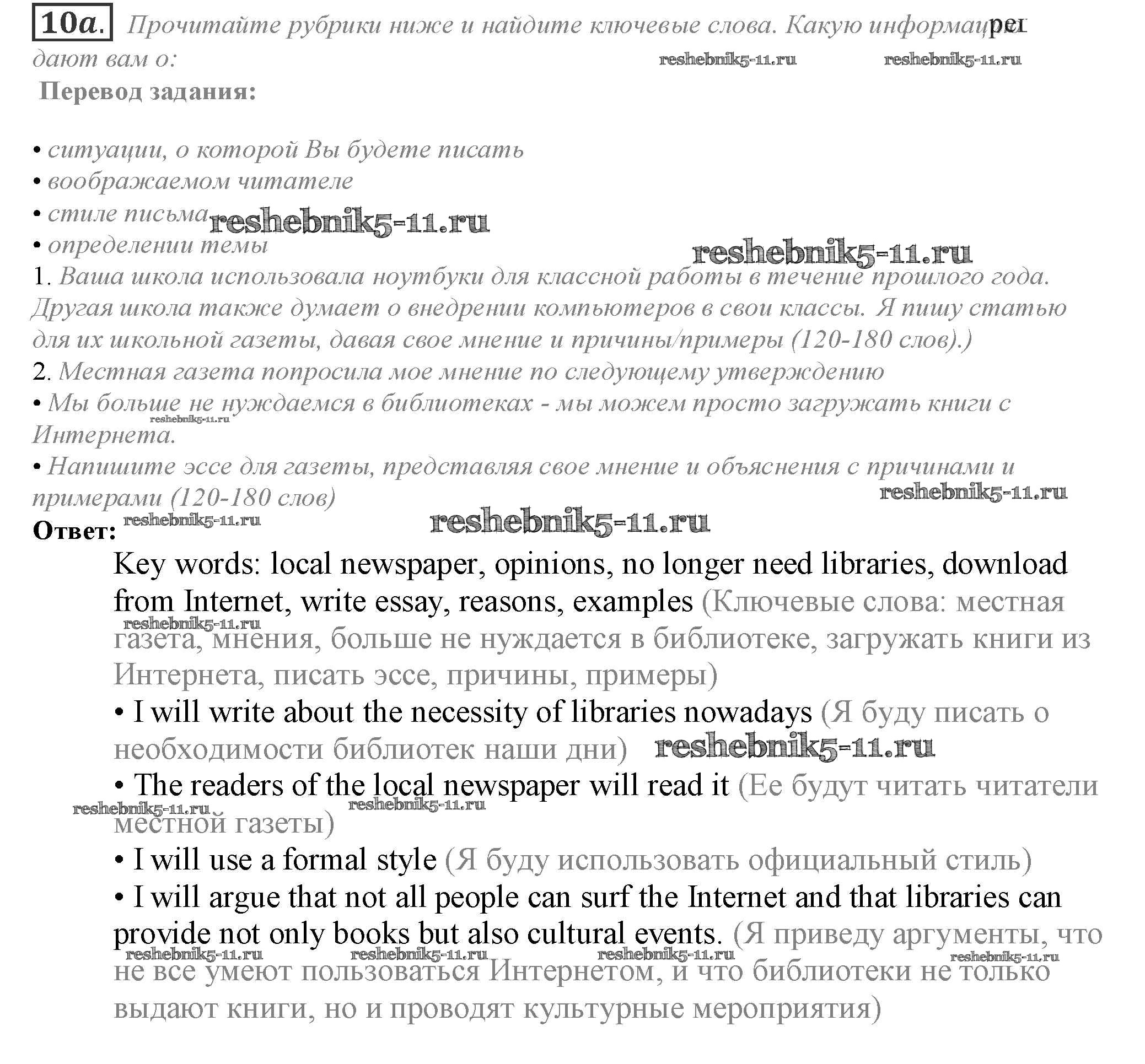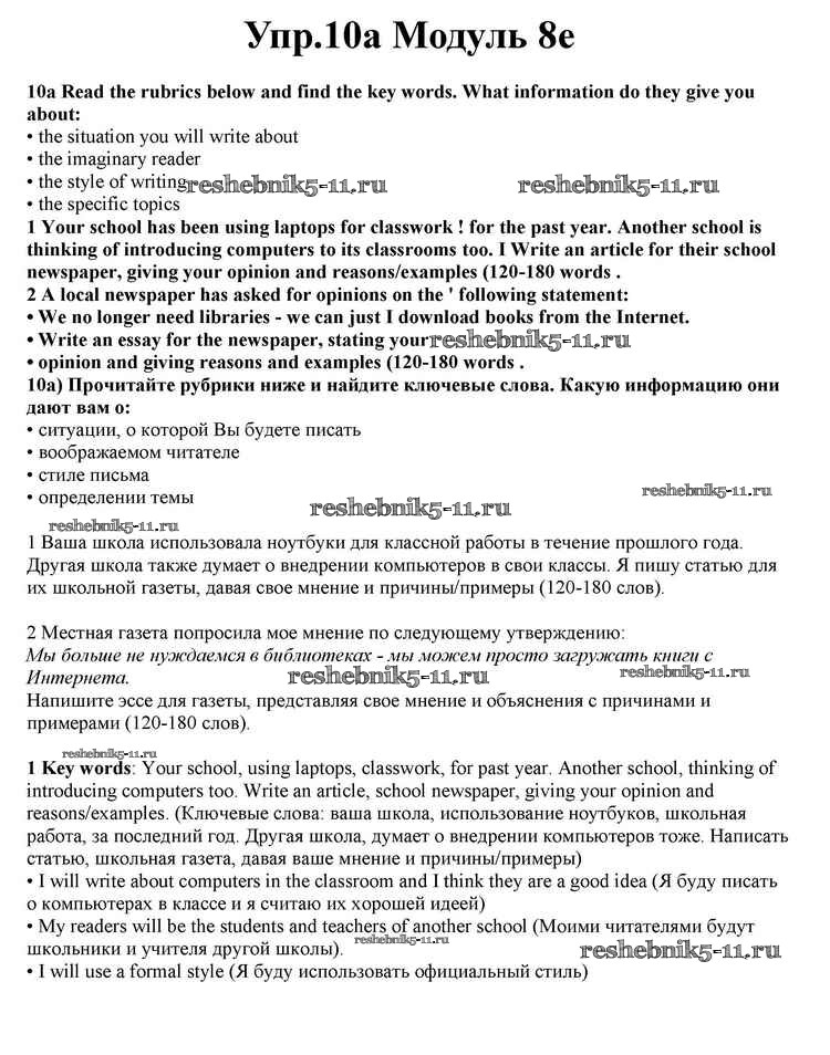 Готовая домашняя работа с ответами по Английскому языку за 10 класс Афанасьева, Дули, Михеева, Оби, Эванс Учебник Spotlight Просвещение 2015 ФГОС - Часть 8e 10a
