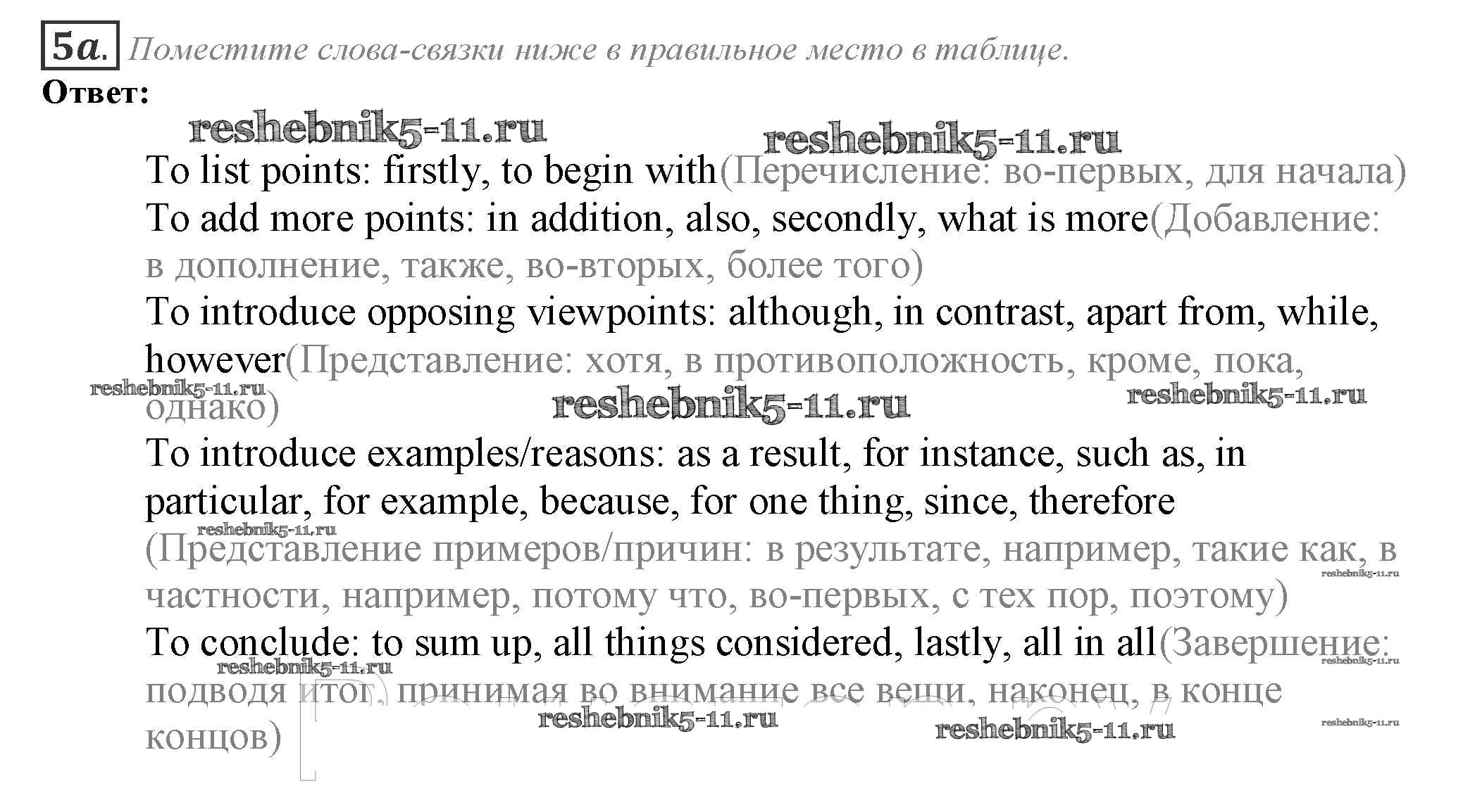 Готовая домашняя работа с ответами по Английскому языку за 10 класс Афанасьева, Дули, Михеева, Оби, Эванс Учебник Spotlight Просвещение 2015 ФГОС - Часть 8e 5a