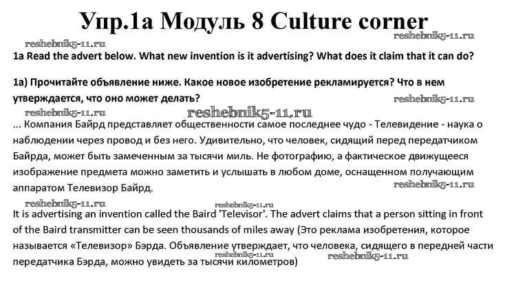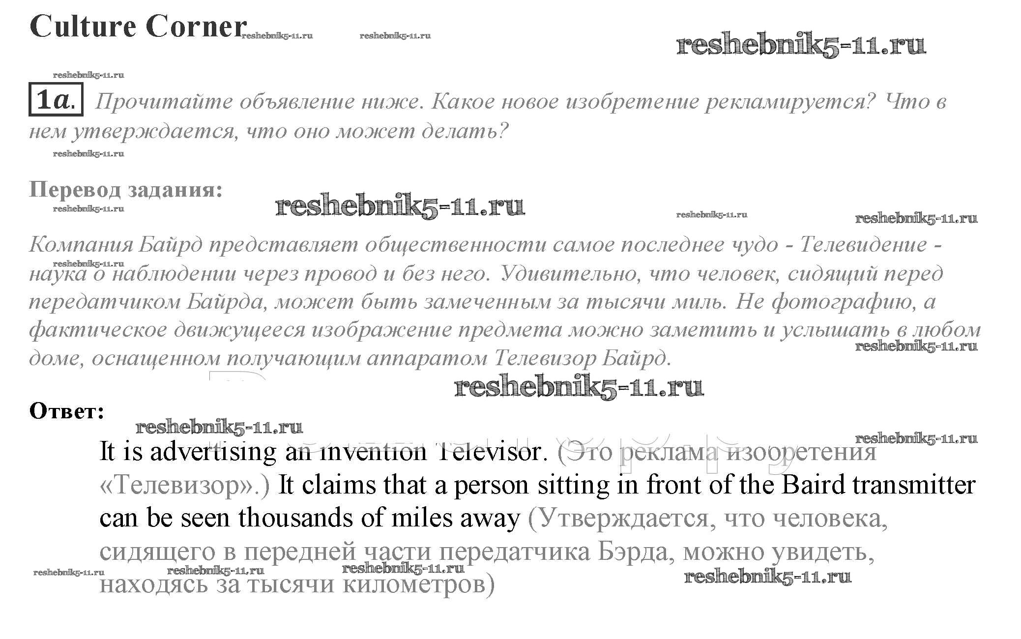 Готовая домашняя работа с ответами по Английскому языку за 10 класс Афанасьева, Дули, Михеева, Оби, Эванс Учебник Spotlight Просвещение 2015 ФГОС - Culture corner 1a