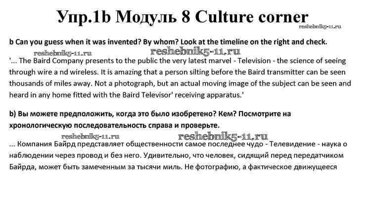 Готовая домашняя работа с ответами по Английскому языку за 10 класс Афанасьева, Дули, Михеева, Оби, Эванс Учебник Spotlight Просвещение 2015 ФГОС - Culture corner 1b
