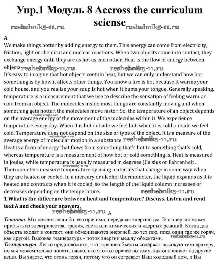 Решебник 1 / module 8 / accross the curriculum Sciense / 1