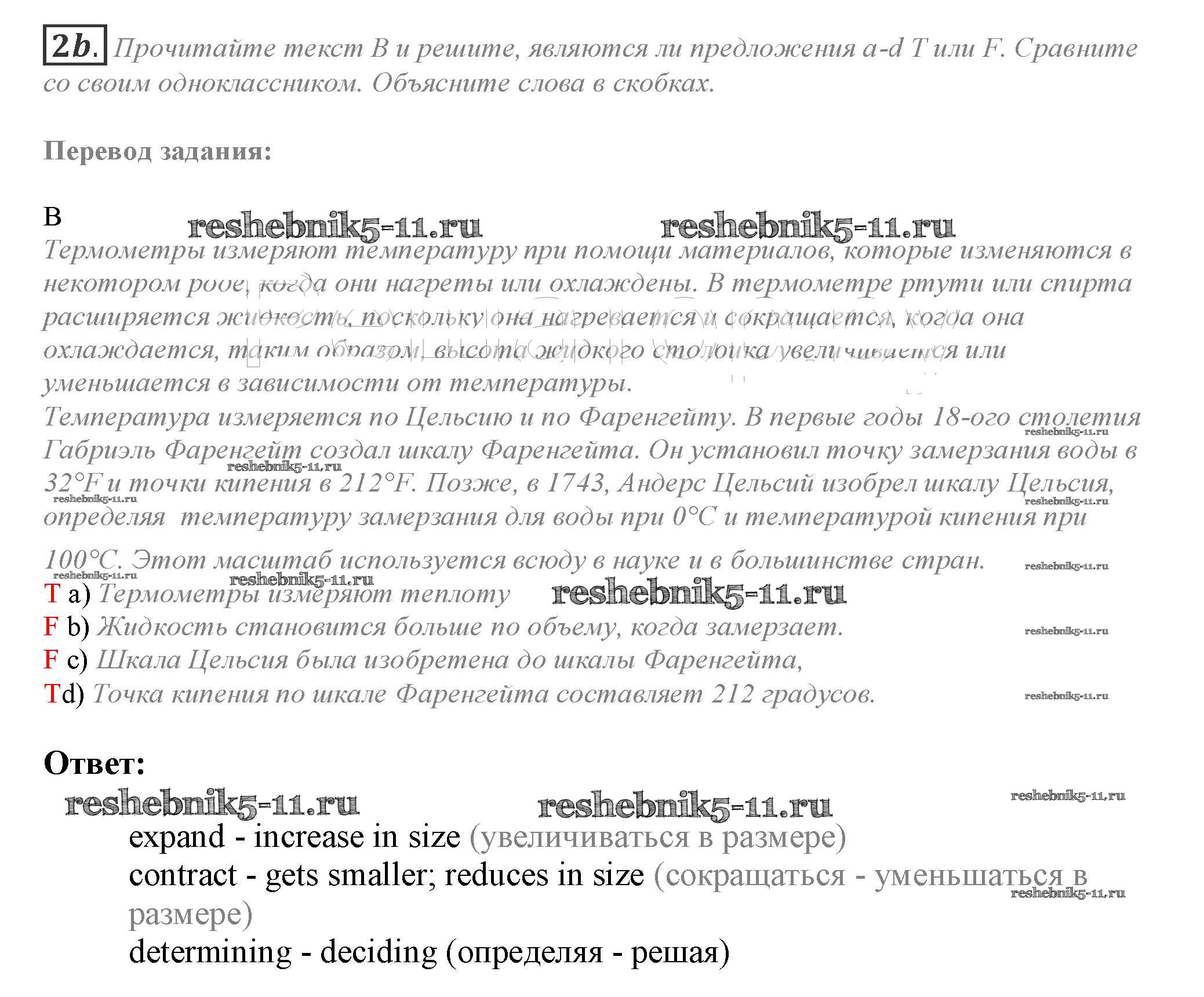 Готовая домашняя работа с ответами по Английскому языку за 10 класс Афанасьева, Дули, Михеева, Оби, Эванс Учебник Spotlight Просвещение 2015 ФГОС - Accross the curriculum Sciense 2b