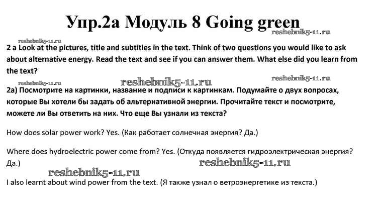 Готовая домашняя работа с ответами по Английскому языку за 10 класс Афанасьева, Дули, Михеева, Оби, Эванс Учебник Spotlight Просвещение 2015 ФГОС - Going green 2a
