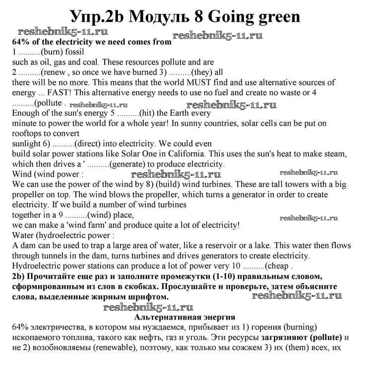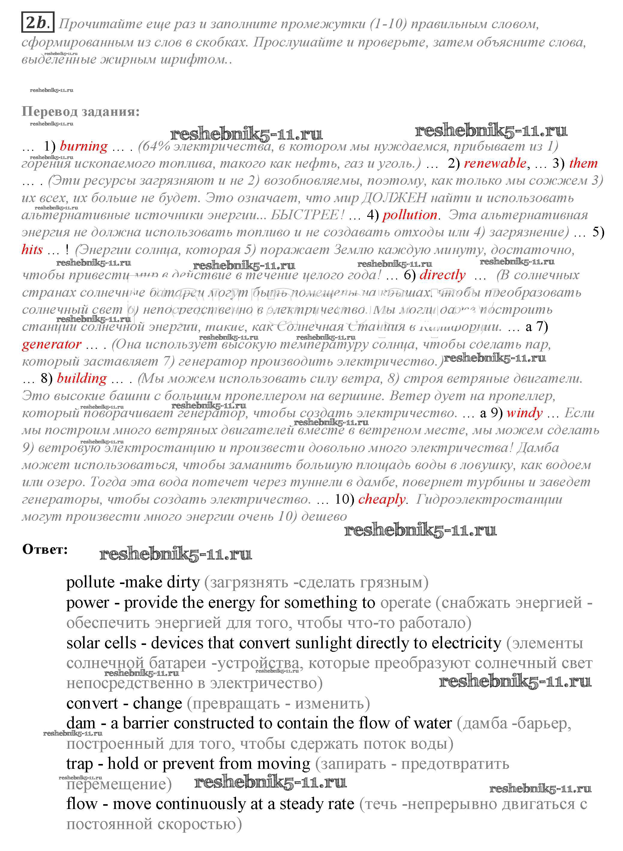 Готовая домашняя работа с ответами по Английскому языку за 10 класс Афанасьева, Дули, Михеева, Оби, Эванс Учебник Spotlight Просвещение 2015 ФГОС - Going green 2b