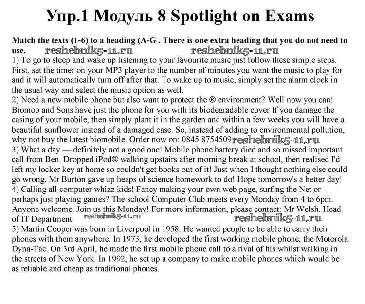 Решебник 1 / module 8 / spotlight on exams / 1