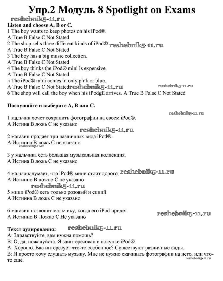 Готовая домашняя работа с ответами по Английскому языку за 10 класс Афанасьева, Дули, Михеева, Оби, Эванс Учебник Spotlight Просвещение 2015 ФГОС - Spotlight on Exams 2