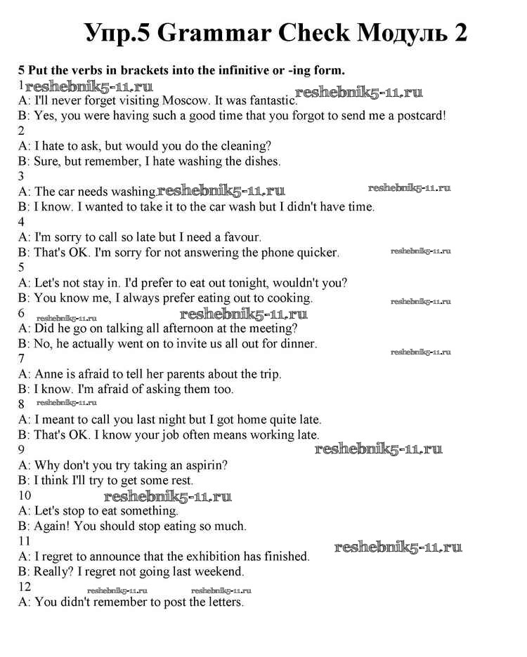Готовая домашняя работа с ответами по Английскому языку за 10 класс Афанасьева, Дули, Михеева, Оби, Эванс Учебник Spotlight Просвещение 2015 ФГОС - Module 2 5