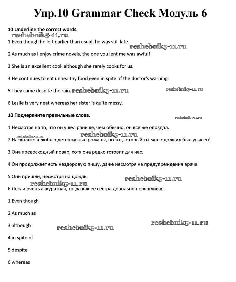 Готовая домашняя работа с ответами по Английскому языку за 10 класс Афанасьева, Дули, Михеева, Оби, Эванс Учебник Spotlight Просвещение 2015 ФГОС - Module 6 10