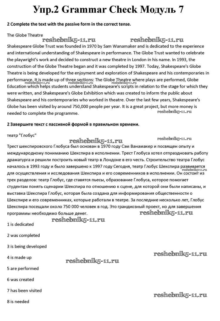 Готовая домашняя работа с ответами по Английскому языку за 10 класс Афанасьева, Дули, Михеева, Оби, Эванс Учебник Spotlight Просвещение 2015 ФГОС - Module 7 2