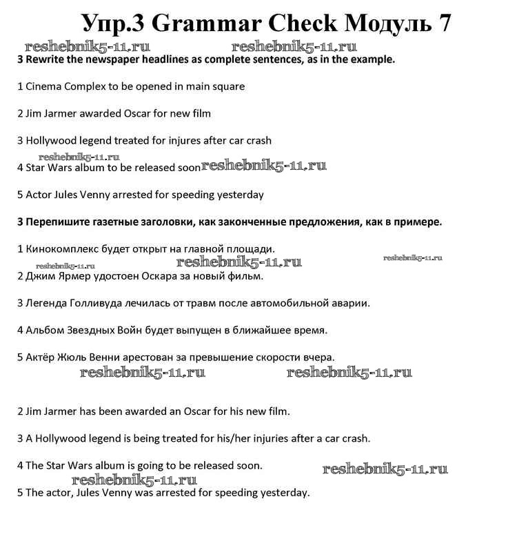 Готовая домашняя работа с ответами по Английскому языку за 10 класс Афанасьева, Дули, Михеева, Оби, Эванс Учебник Spotlight Просвещение 2015 ФГОС - Module 7 3