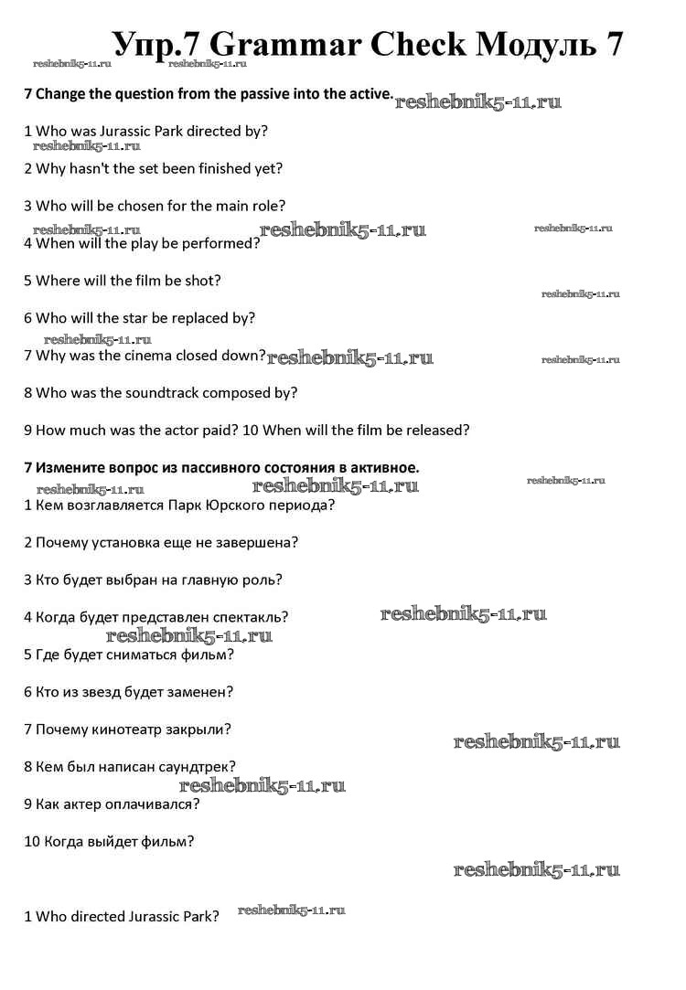 Готовая домашняя работа с ответами по Английскому языку за 10 класс Афанасьева, Дули, Михеева, Оби, Эванс Учебник Spotlight Просвещение 2015 ФГОС - Module 7 7