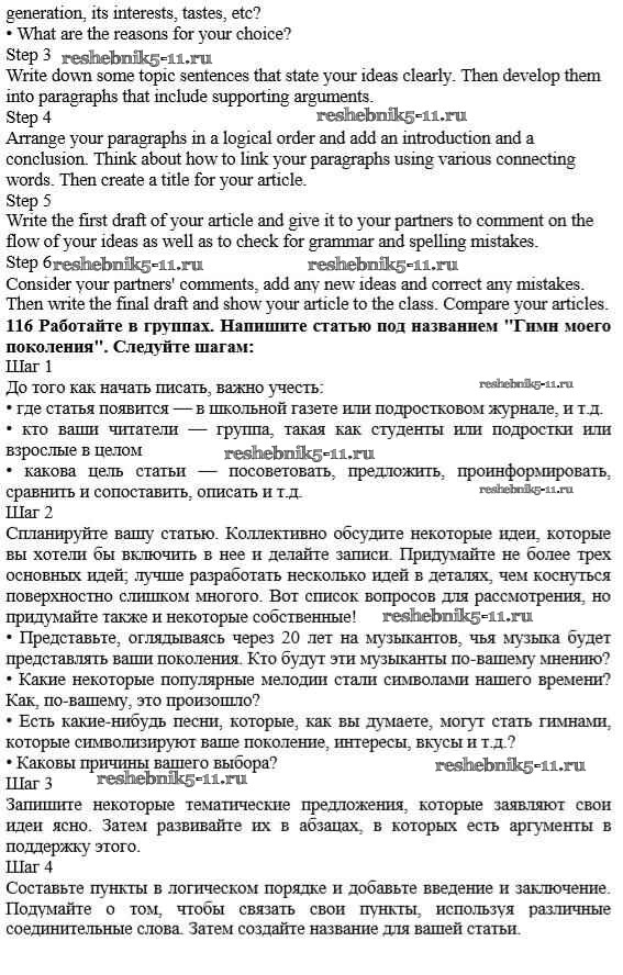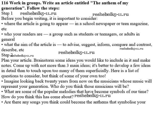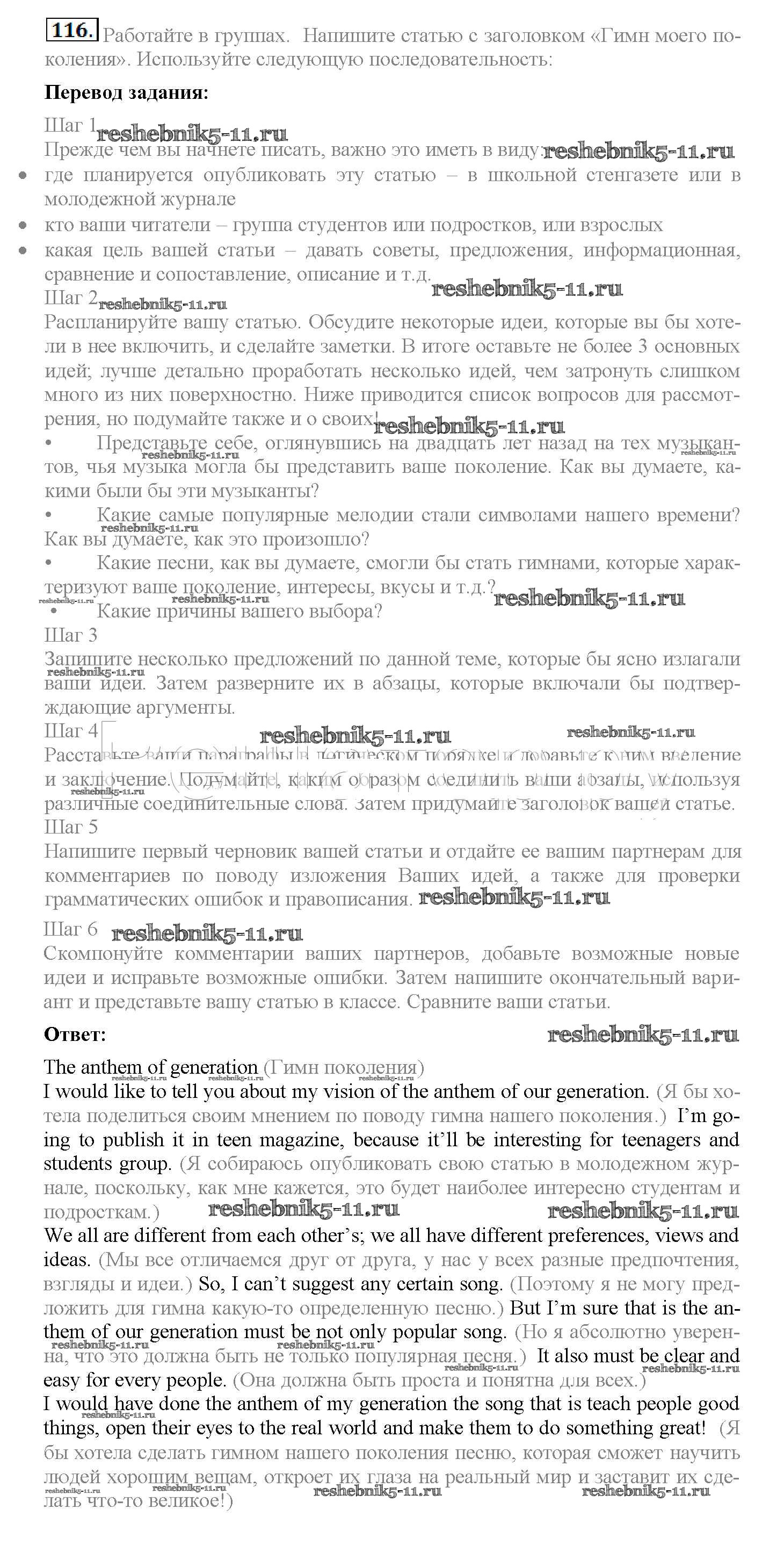 Готовая домашняя работа с ответами по Английскому языку за 10 класс Биболетова, Денисенко, Трубанева Учебник Enjoy English Аст/Астрель 2016 ФГОС - Unit 1. Start anew 116
