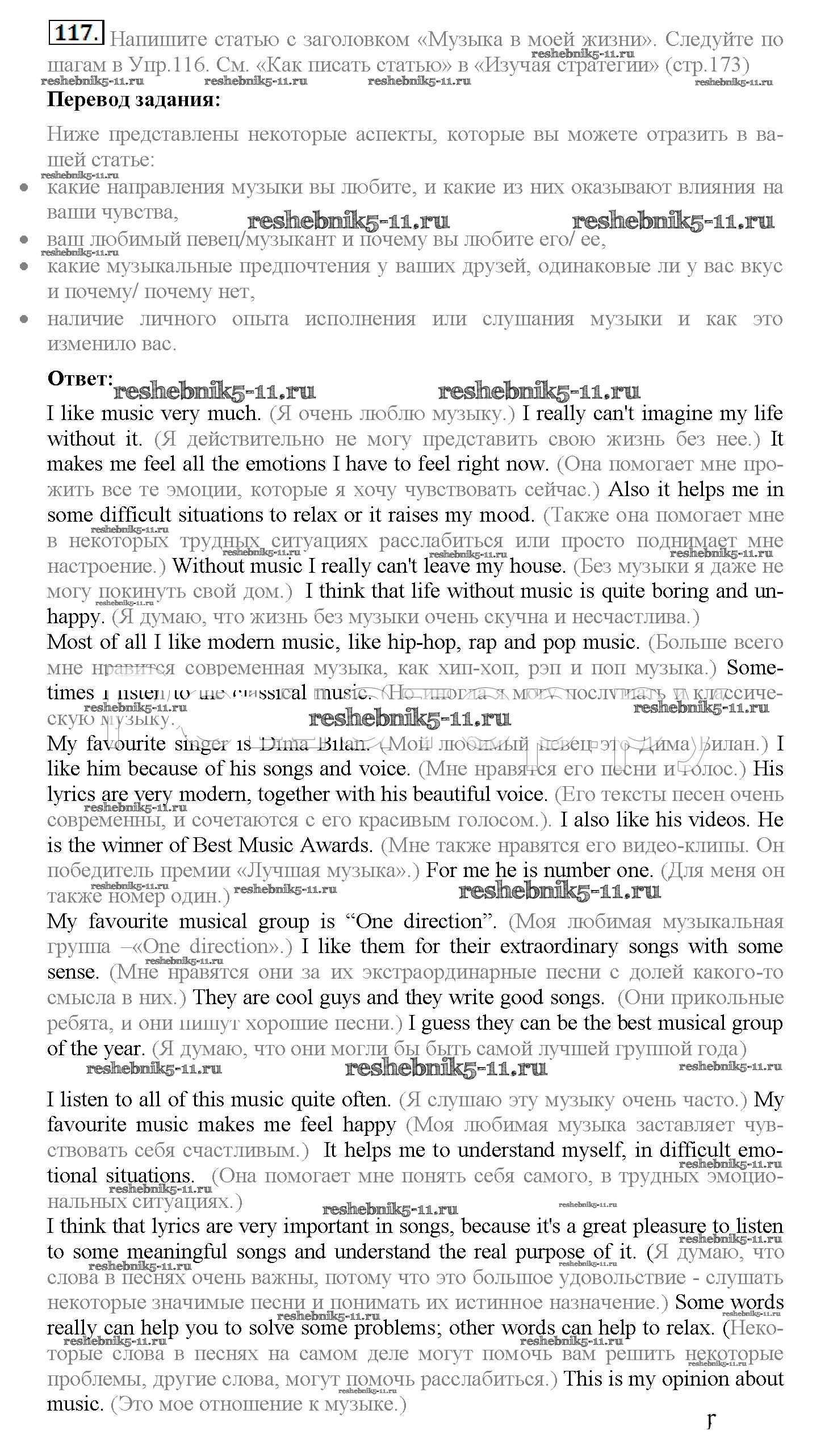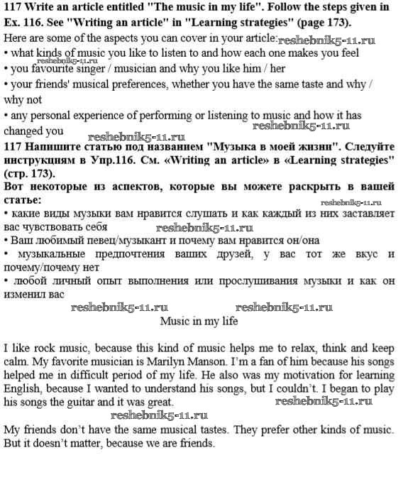 Готовая домашняя работа с ответами по Английскому языку за 10 класс Биболетова, Денисенко, Трубанева Учебник Enjoy English Аст/Астрель 2016 ФГОС - Unit 1. Start anew 117