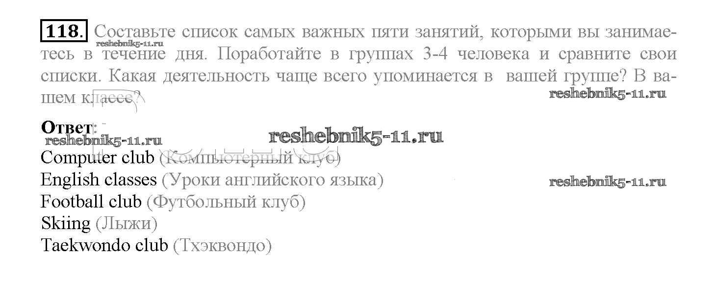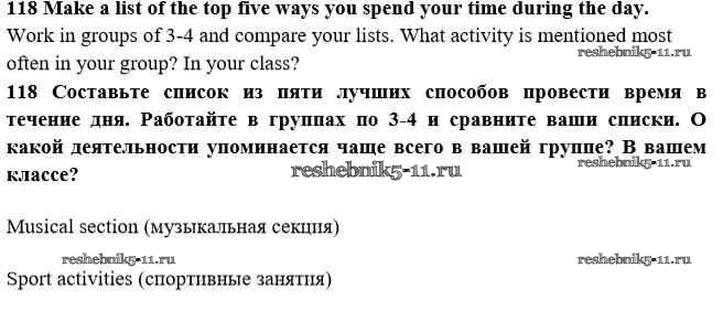 Готовая домашняя работа с ответами по Английскому языку за 10 класс Биболетова, Денисенко, Трубанева Учебник Enjoy English Аст/Астрель 2016 ФГОС - Unit 1. Start anew 118