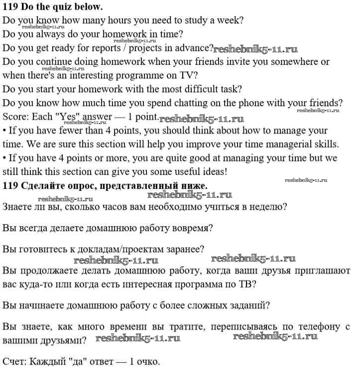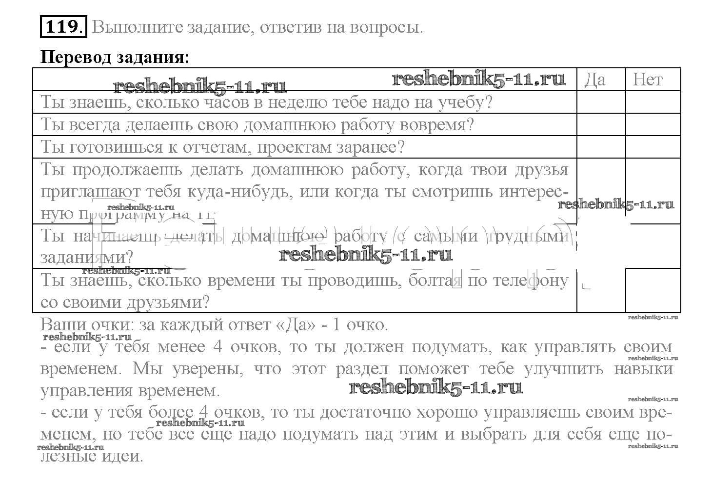 Готовая домашняя работа с ответами по Английскому языку за 10 класс Биболетова, Денисенко, Трубанева Учебник Enjoy English Аст/Астрель 2016 ФГОС - Unit 1. Start anew 119