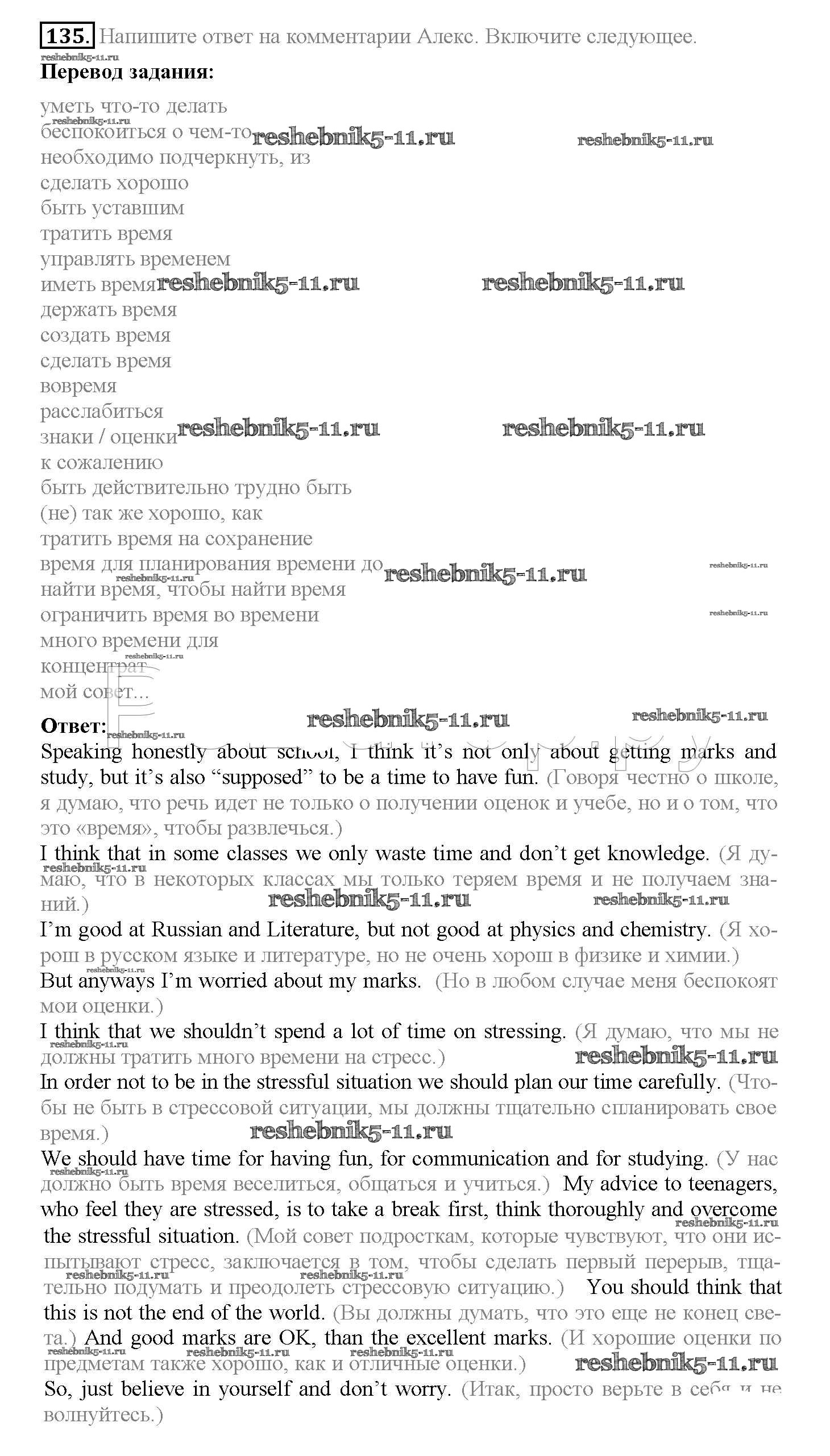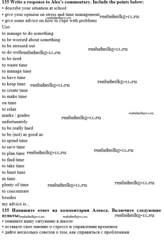 Готовая домашняя работа с ответами по Английскому языку за 10 класс Биболетова, Денисенко, Трубанева Учебник Enjoy English Аст/Астрель 2016 ФГОС - Unit 1. Start anew 135