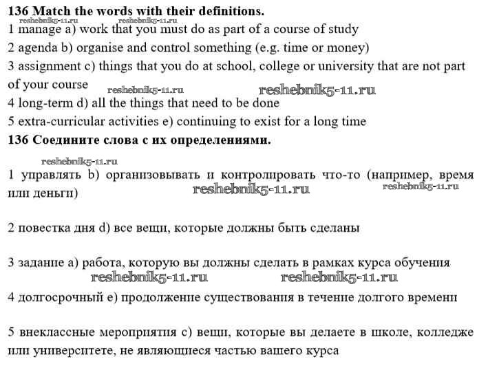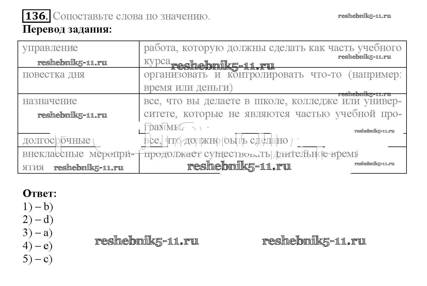 Готовая домашняя работа с ответами по Английскому языку за 10 класс Биболетова, Денисенко, Трубанева Учебник Enjoy English Аст/Астрель 2016 ФГОС - Unit 1. Start anew 136