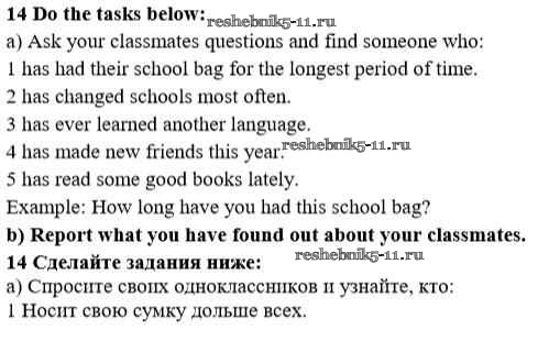 Готовая домашняя работа с ответами по Английскому языку за 10 класс Биболетова, Денисенко, Трубанева Учебник Enjoy English Аст/Астрель 2016 ФГОС - Unit 1. Start anew 14
