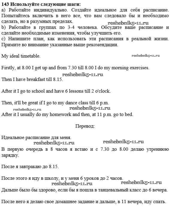 Готовая домашняя работа с ответами по Английскому языку за 10 класс Биболетова, Денисенко, Трубанева Учебник Enjoy English Аст/Астрель 2016 ФГОС - Unit 1. Start anew 143