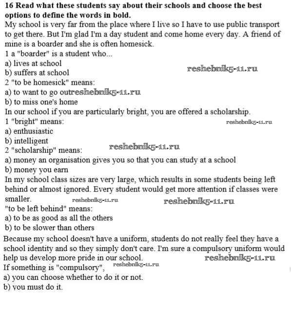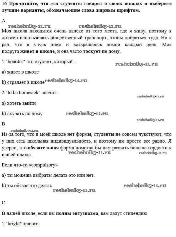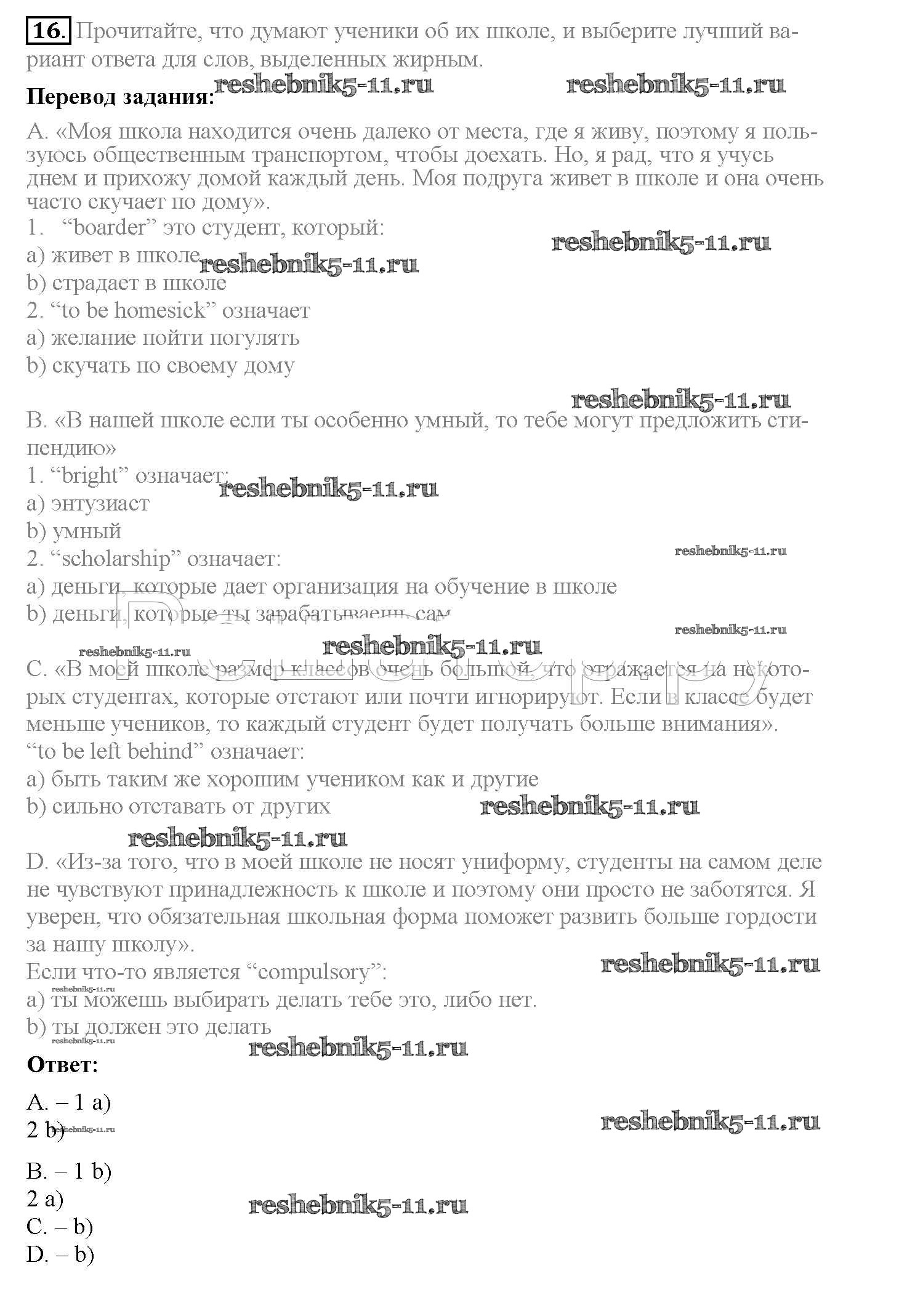 Готовая домашняя работа с ответами по Английскому языку за 10 класс Биболетова, Денисенко, Трубанева Учебник Enjoy English Аст/Астрель 2016 ФГОС - Unit 1. Start anew 16