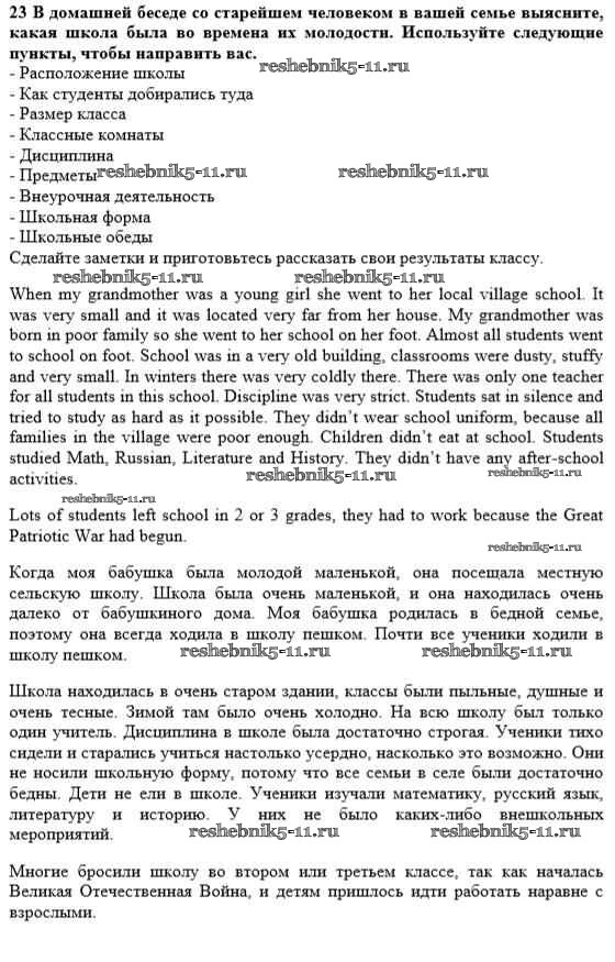 Готовая домашняя работа с ответами по Английскому языку за 10 класс Биболетова, Денисенко, Трубанева Учебник Enjoy English Аст/Астрель 2016 ФГОС - Unit 1. Start anew 23