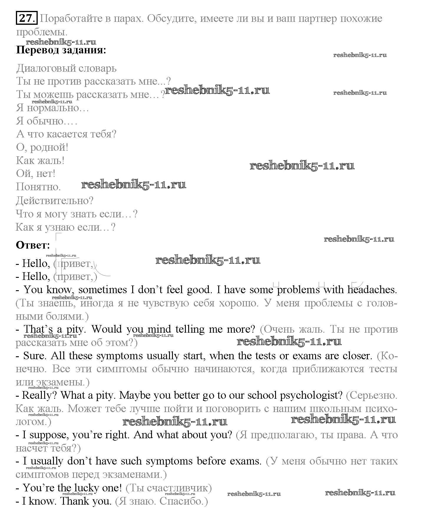 Готовая домашняя работа с ответами по Английскому языку за 10 класс Биболетова, Денисенко, Трубанева Учебник Enjoy English Аст/Астрель 2016 ФГОС - Unit 1. Start anew 27