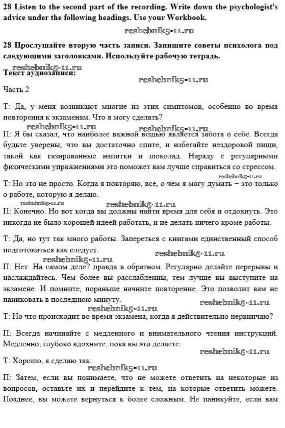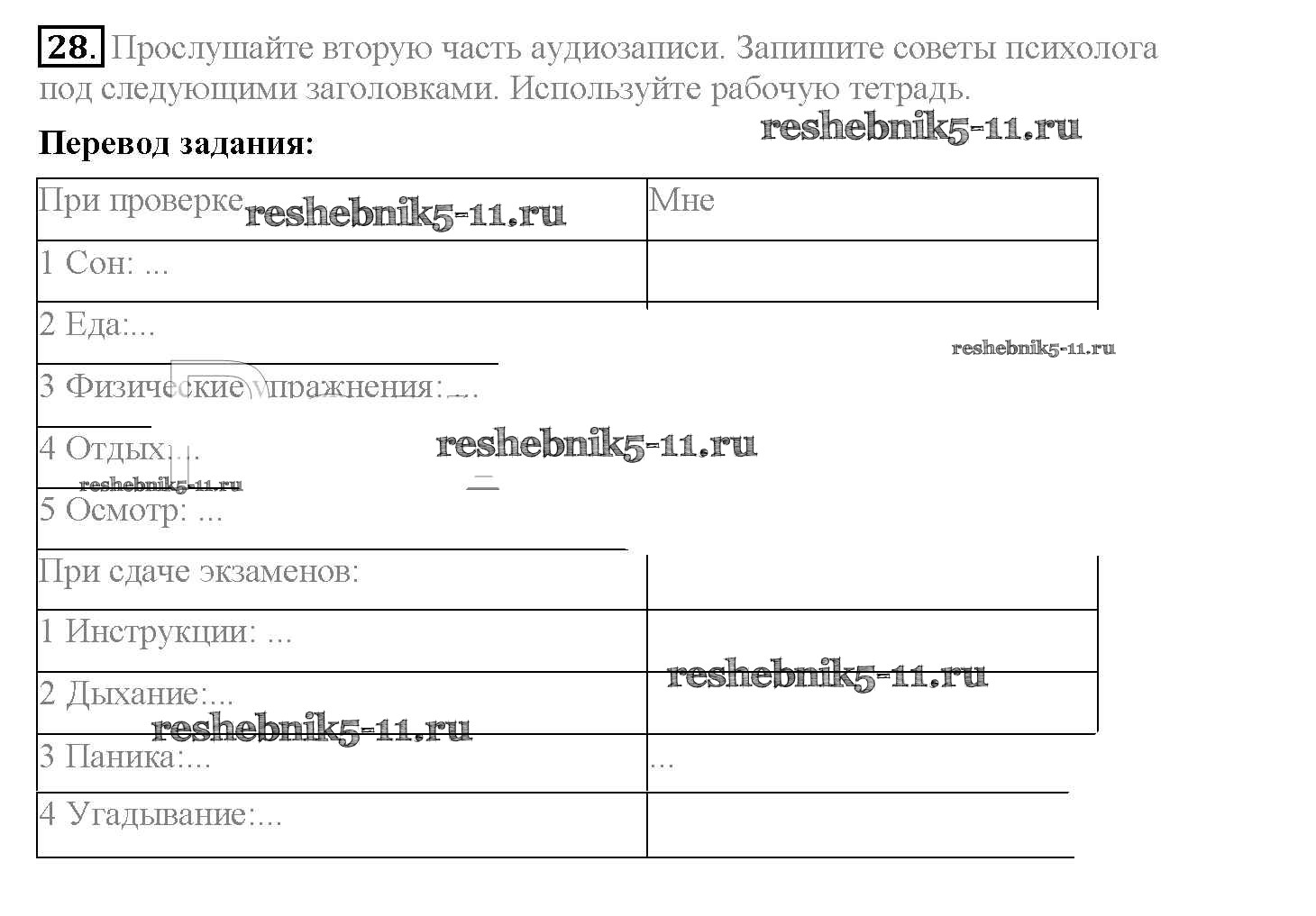 Готовая домашняя работа с ответами по Английскому языку за 10 класс Биболетова, Денисенко, Трубанева Учебник Enjoy English Аст/Астрель 2016 ФГОС - Unit 1. Start anew 28